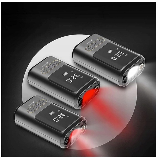 Електричний БЕЗДРОТОВИЙ насос для автомобіля та велосипеда з компресором, блоком живлення та ліхтариком
