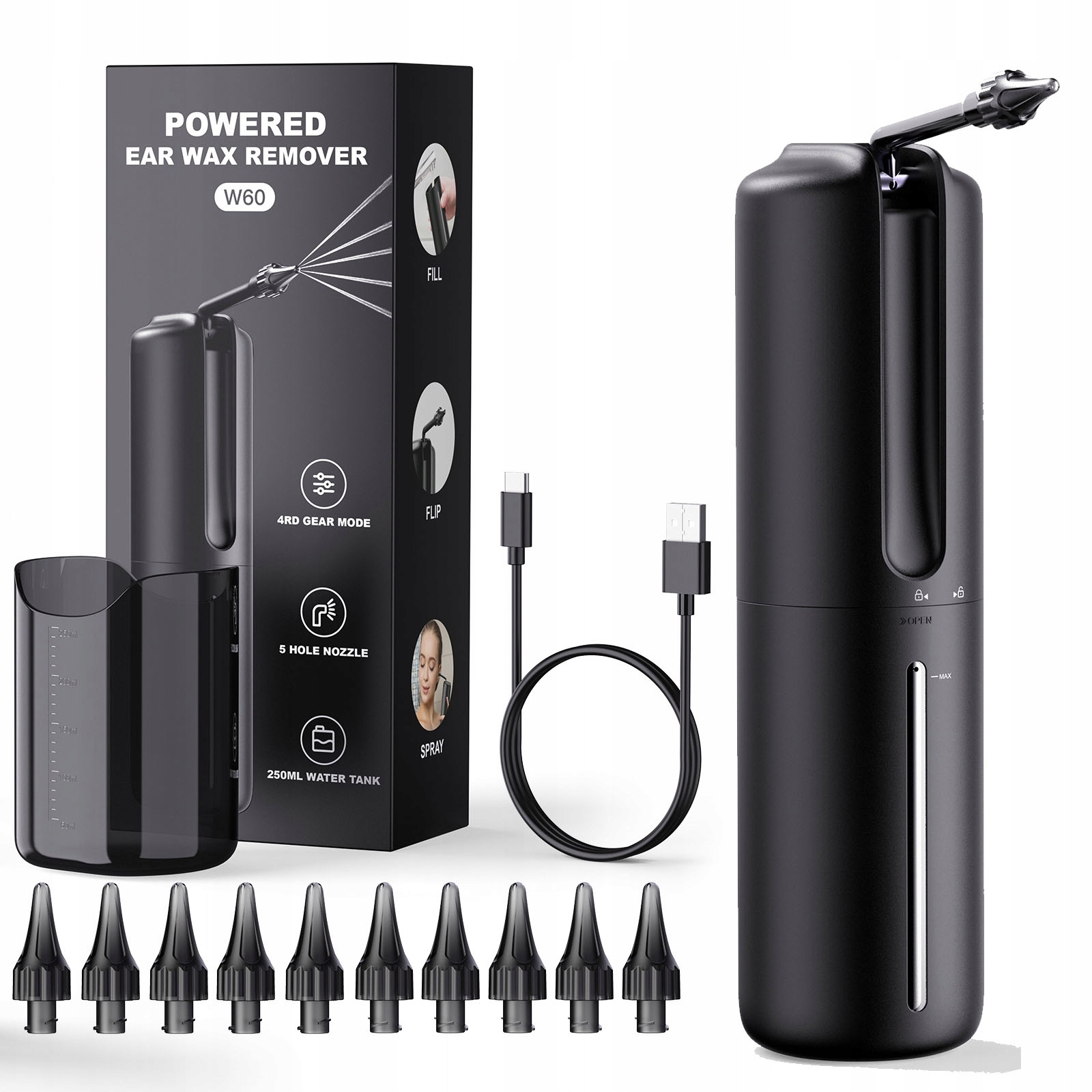 Включає пристрій для чищення вух, резервуар для води, 10 змінні насадки, кабель USB-C і посібник користувача.