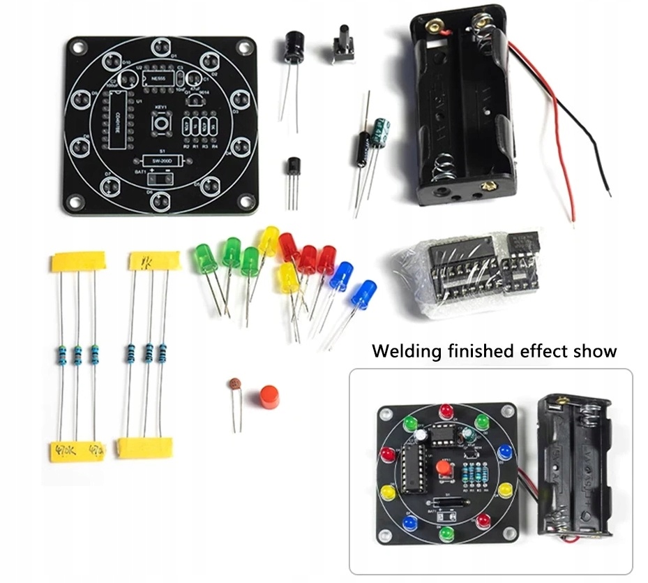 Системи мають на пластині схему друкованої збірки. Вам потрібно звернути увагу на полярність за такі елементи, як конденсатори, діоди, транзистори. У випадку світлодіодів довша нога - це плюс +, більшість елементів описали параметри на корпусі. Резистори можуть мати позначення смужок, їх опір та толерантність можна прочитати за допомогою калькуляторів, доступних в Інтернеті або вимірюванням лічильника. Порядок складання зазвичай безкоштовно, залежно від системи, ми спочатку встановлюємо найменші елементи.
