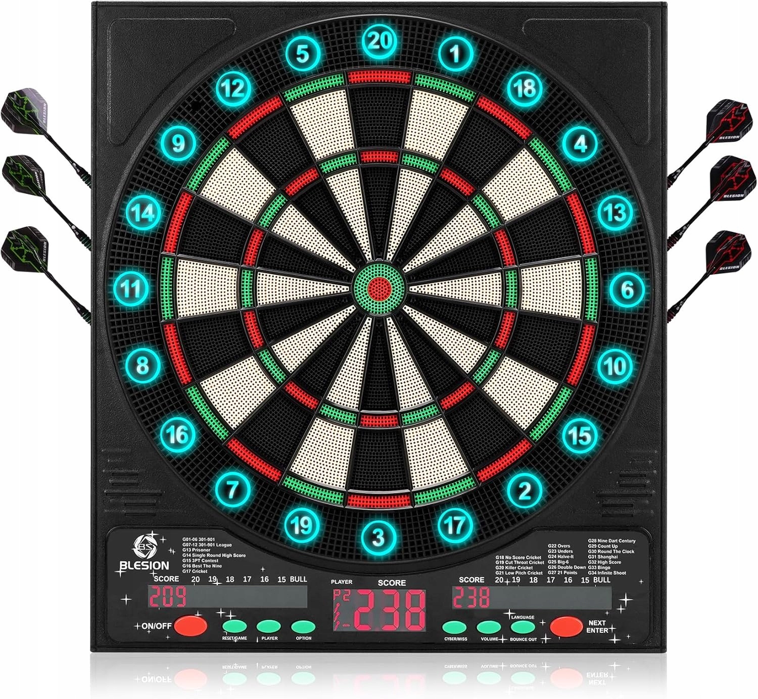 Сучасний електронний дротик з 13,5 -дюймом, виготовленим з неймовірно міцних полімерних сумішей, забезпечуючи довгострокове використання. Щит оточений тривалим кільцем, яке захищає стіни від пропущених дартс. 4 Він пропонує можливість грати на максимум 8 гравців, а голосові повідомлення можуть бути відрегульовані в діапазоні 0-7. Крім того, щит підтримує три мови на вибір, що робить його ідеальним рішенням для міжнародних закоханих DART. та сім'ї. Технічні характеристики