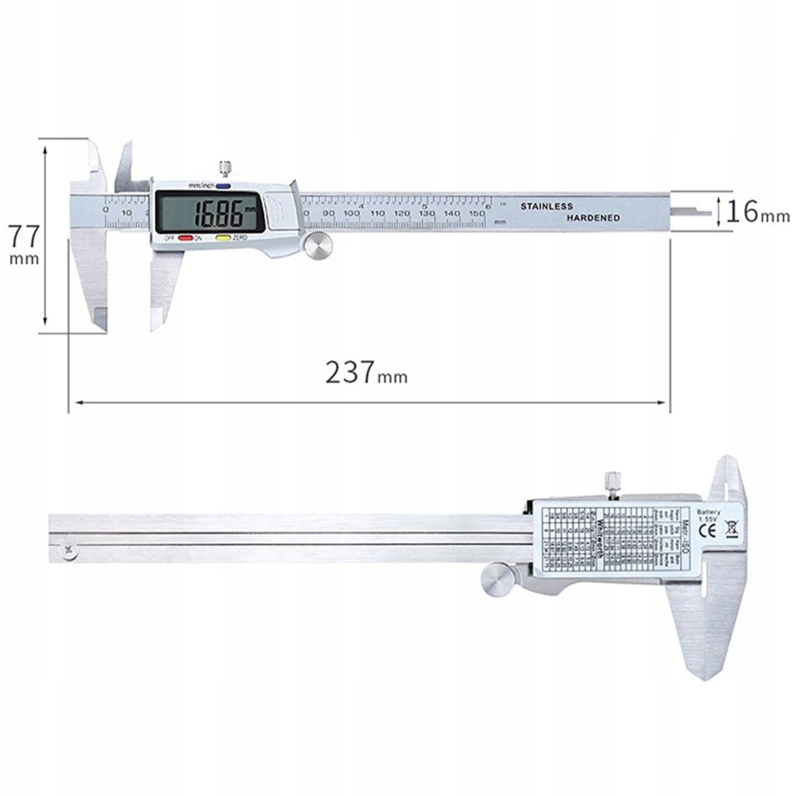 - Діапазон вимірювання 0-150 мм/6"