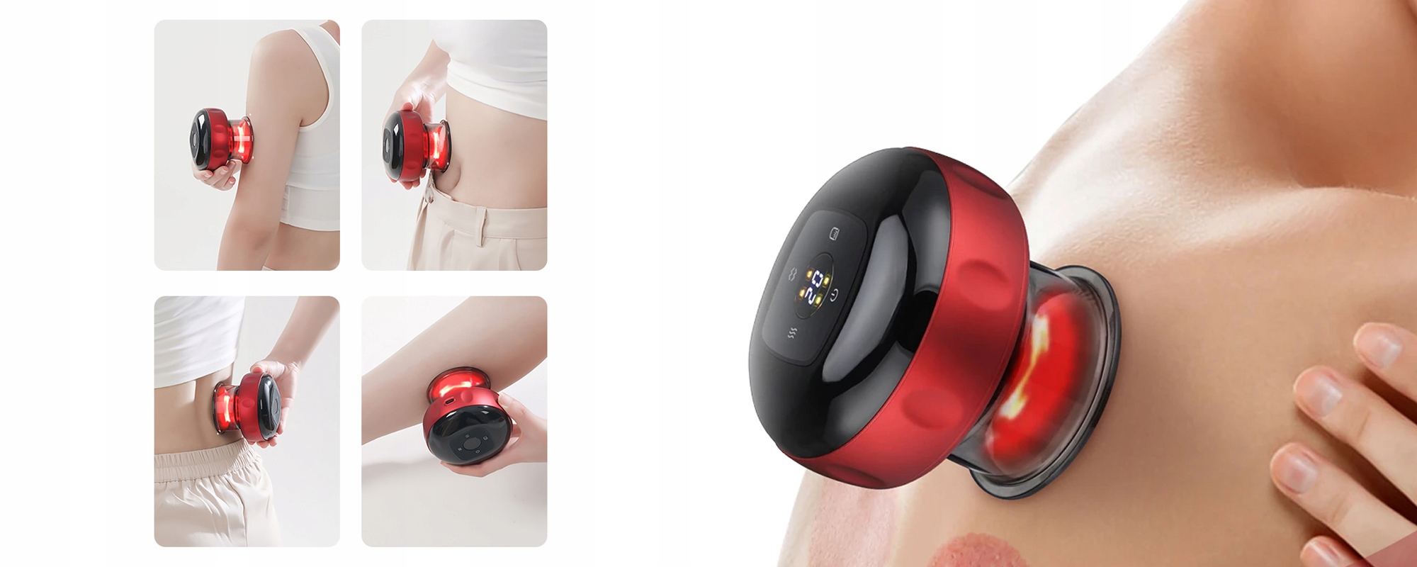 Електронний баночний пристрій Humanas BB01 також дозволить виконувати косметичні процедури. Завдяки точному регулюванню потужності всмоктування прилад допомагає формувати фігуру, розгладити шкіру, усунути целюліт і зменшити видимість розтяжок. Регулярне застосування китайської баночки також покращує пружність і еластичність шкіри. Також він допомагає позбутися дрібних зморшок. Це інноваційне рішення для людей, які хочуть уповільнити процес старіння шкіри та безпечно піклуватися про своє тіло.