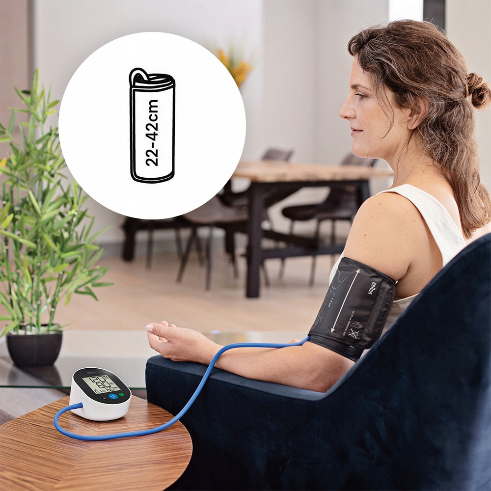 манжет для вимірювання артеріального тиску, прикріпленого до монітора артеріального тиску Braun ™ 2, був розроблений для вмісту на плечі з окружністю 22-42 см , забезпечуючи комфорт незалежно від структури тіла.