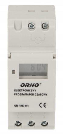ЕЛЕКТРОННИЙ ПРОГРАМАТОР ЧАСУ Orno OR-PRE-414 з рідкокристалічним дисплеєм використовується для встановлення часу ввімкнення та вимкненняелектричних пристроїв (наприклад, освітлення, водонагрівачів, реклами тощо) . Він призначений для встановлення на рейку DIN TH-35.