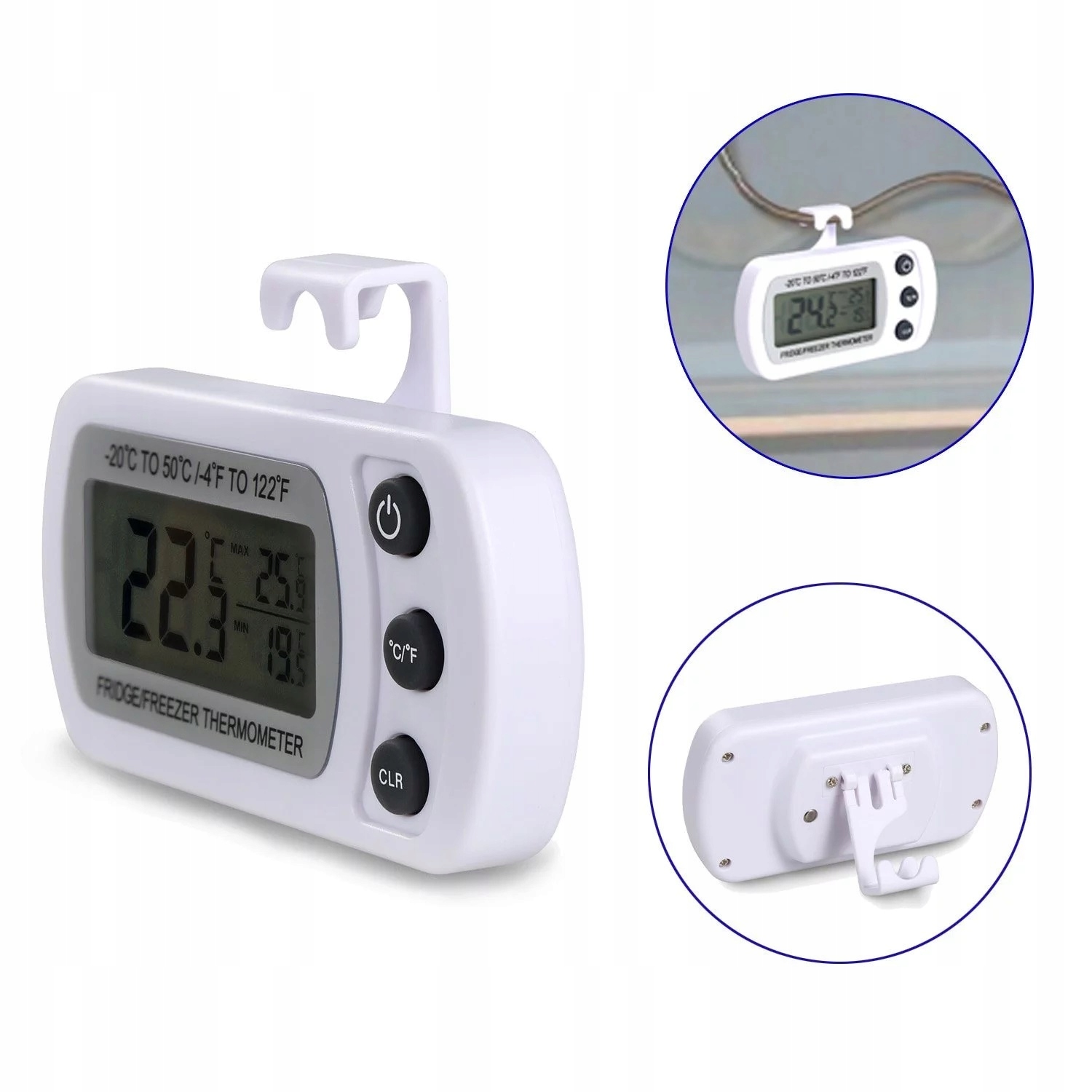 Цифровий термометр для холодильника/морозильника компактний і водонепроникний, з дуже великими цифрами, які легко читати навіть на відстані. Багатофункціональний гачок для зручного підвішування або розміщення на полиці. Великий робочий діапазон від -20 до 50 градусів Цельсія.