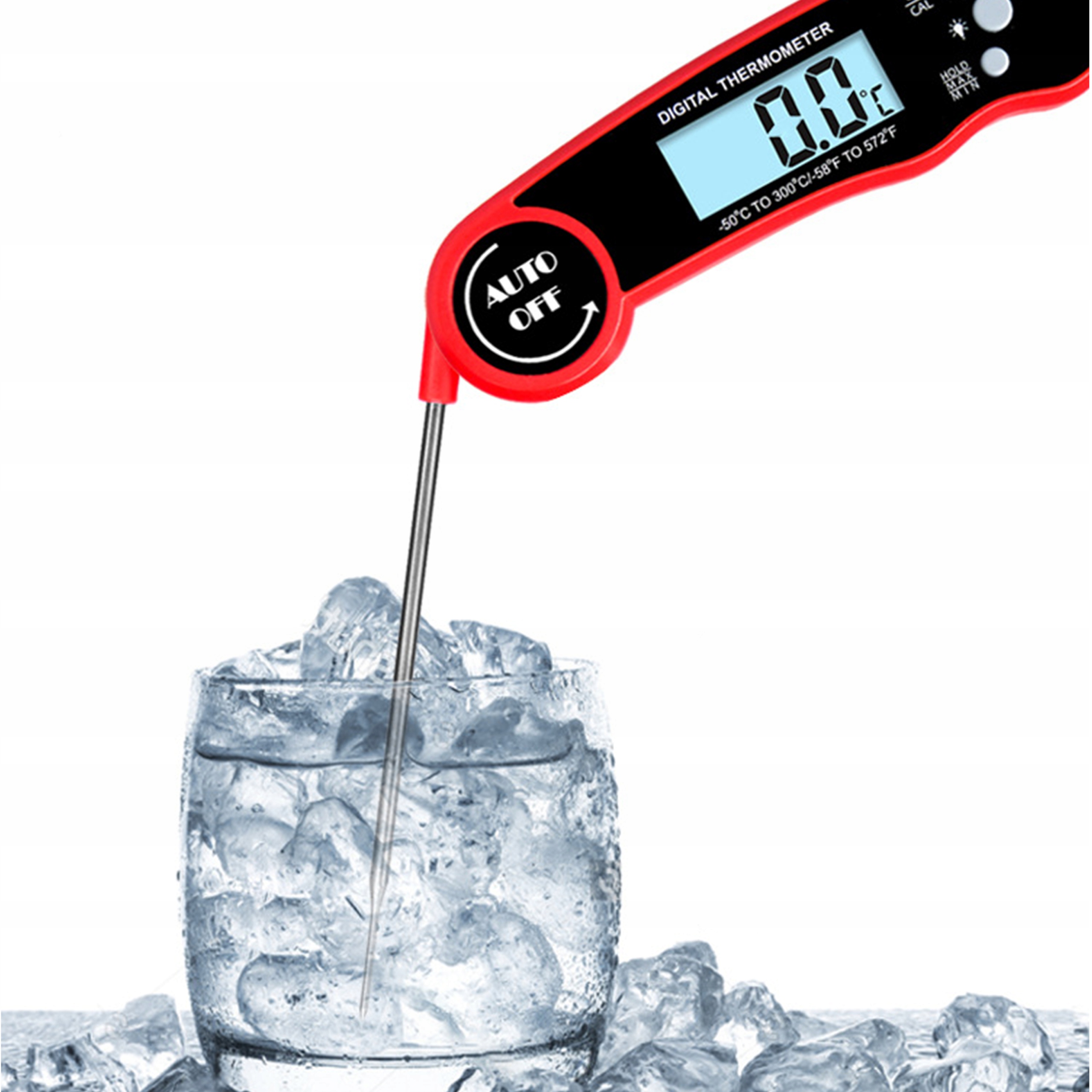 ✔️ Калібрування - прилад має можливість калібрувати вдома просто поставте на холод воду в склянку великої кількості кубиків льоду, вставте вимірювальний зонд і утримуйте кнопку CAL протягом трьох секунд. Вода має бути 0°C.