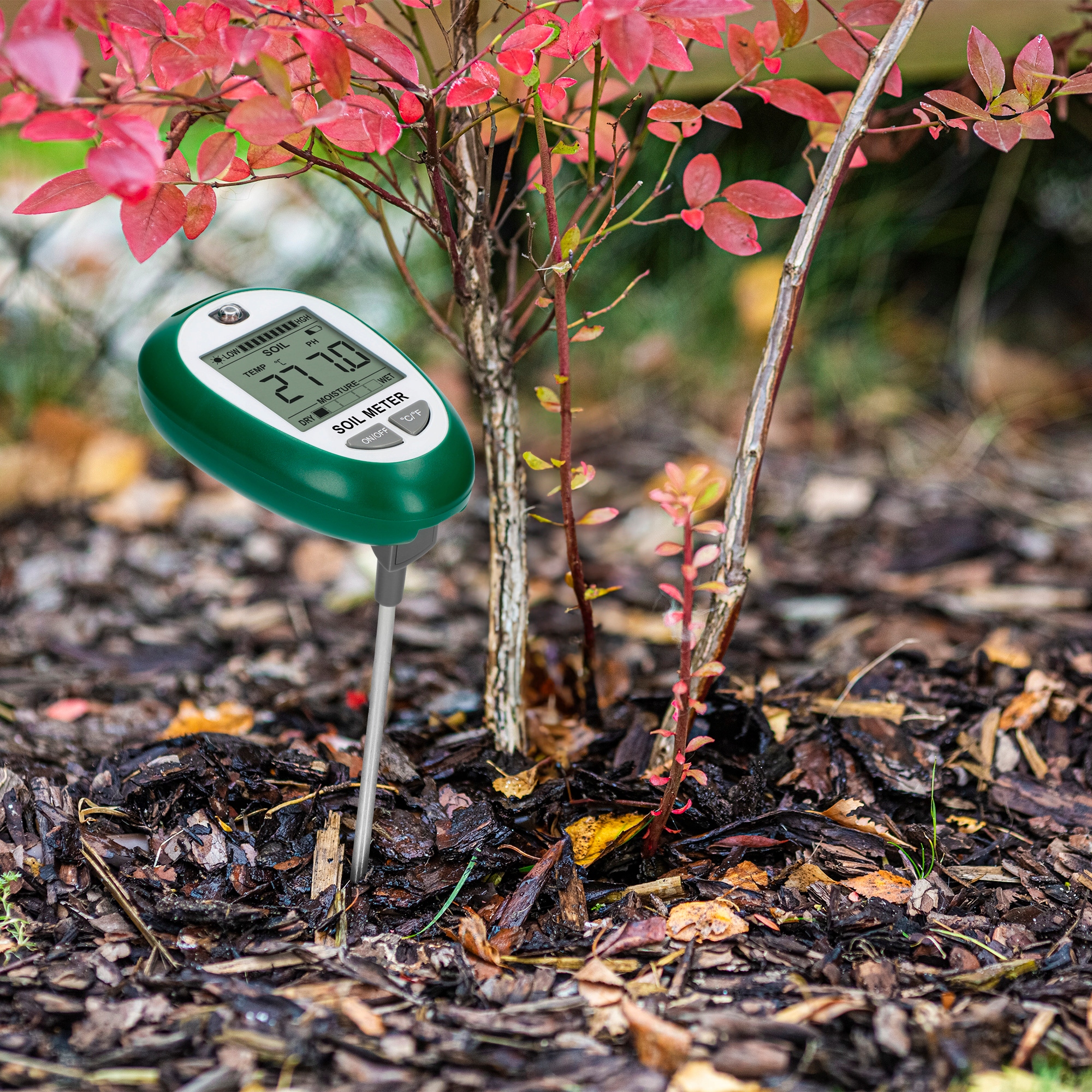 Ви хочете, щоб ваші рослини росли здоровими та пишними? Знайомтеся з електронним тестером ґрунту 4 в 1, який надасть вам необхідну інформацію про ґрунт у вашому саду, а також у горщиках на терасі чи в ящиках на балконі – і допоможе вам забезпечити оптимальні умови для ваших рослин!