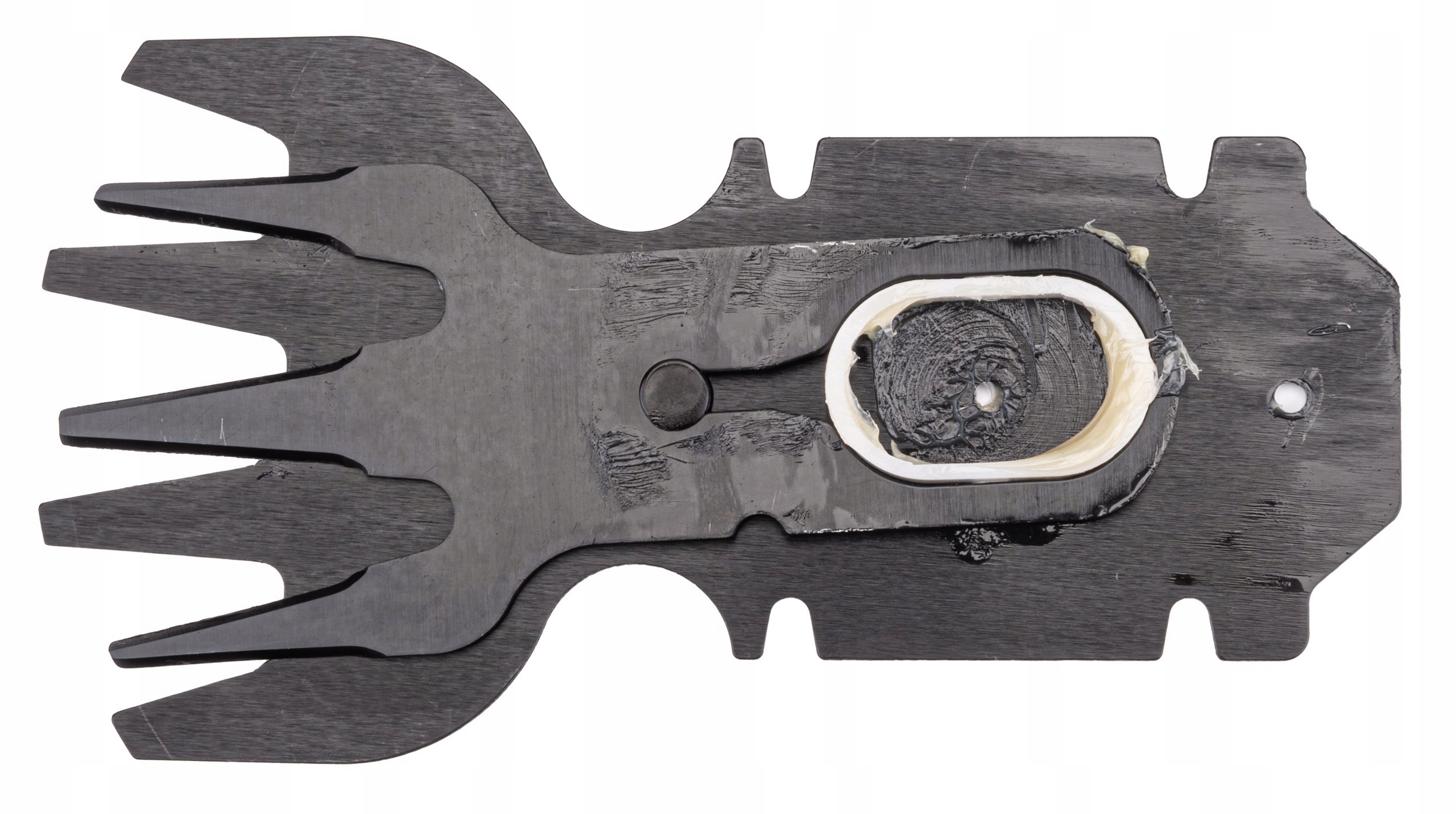 У набір входить лезо для підстригання трави шириною 83 мм та лезо для підстригання кущів довжиною 120 мм, відстань між зубами 6 мм. Лезо змінюється за допомогою системи без інструментів, що дозволяє швидко змінити ножиці для трави на ножиці для кущів. Використання двох ножів дозволяє точно формувати краї газону та невеликі кущі.
