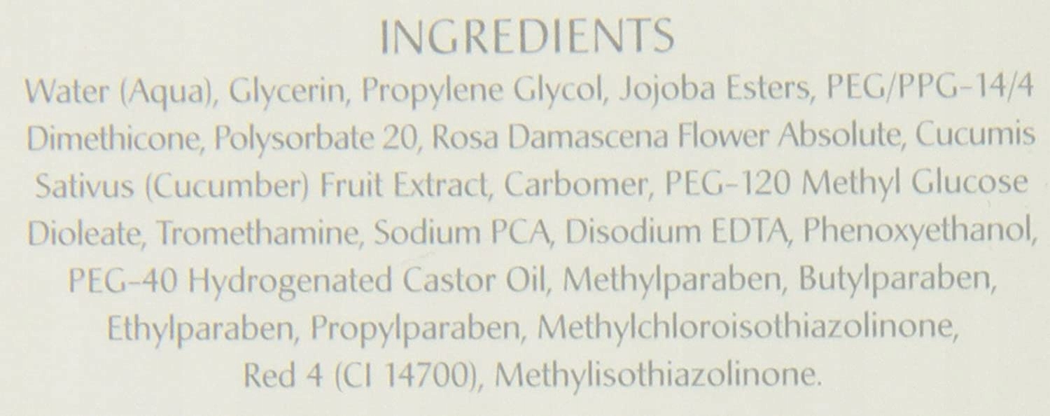 Містить мікросферичні кульки жожоба, змішані із зволожувачем Абсолют троянди ніжно розгладжує поверхню шкіри, а екстракт огірка заспокоює та освіжає.