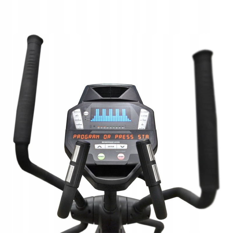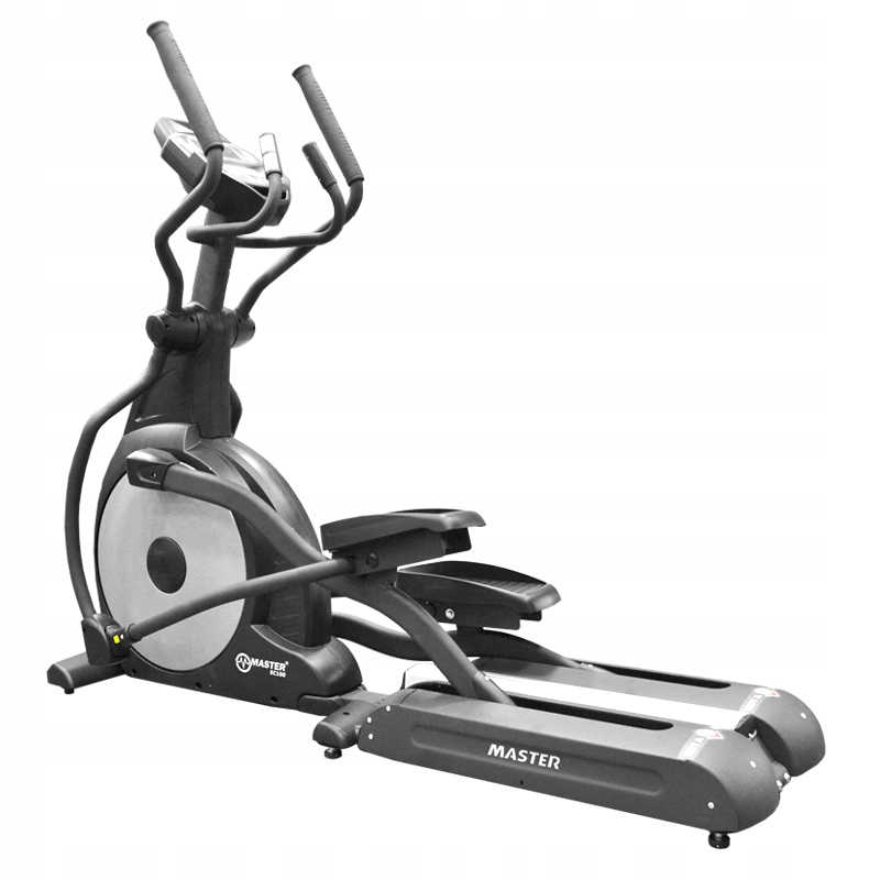 Професійний тренувальний еліптичний тренажер MASTER EC100 має маховик 13,5 кг з електронним регулюванням навантаження. Пристрій має вантажопідйомність 40 градусів. Пристрій має дуже стійку структуру. Це еліптичний тренажер з усіма необхідними функціями. Комп’ютер із рідкокристалічним дисплеєм має низку корисних функцій. На дисплеї відображається така інформація, як час, швидкість, відстань, пульс, спалені калорії, продуктивність і темп. Комп'ютер має графічну симуляцію бігу на 400 метрів і бездротовий пояс JUNSO. Він має 9 програм (5 попередньо встановлених, програма користувача, дві програми, адаптовані до серцевого ритму, програма, що адаптується до фізичної та фізичної підготовки).
