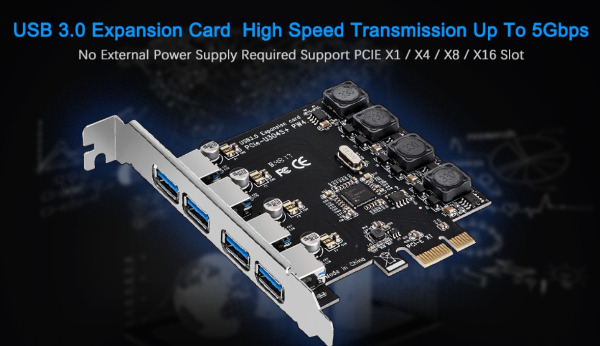 - Широка сумісність - 4 -port PCI Express USB 3.0 карта підтримує розетки PCIE X1/X4/X8/X16. Розетки PCI не підтримуються. Підтримує XP, Win788.110 та інші системи.