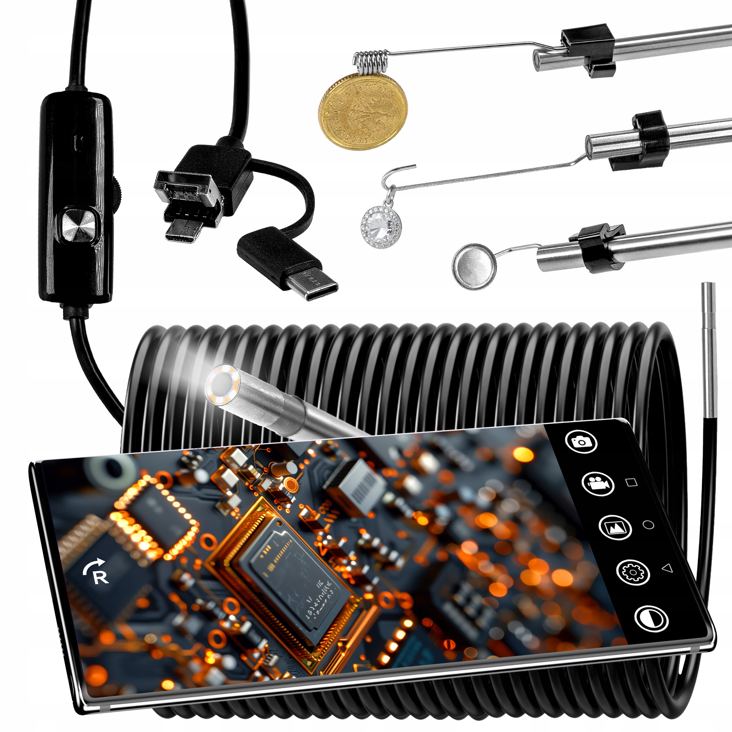 ЕНДОСКОПІЧНА ІНСПЕКЦІЙНА КАМЕРА 3,9 ММ 5 М 3в1 для ПК, ТЕЛЕФОНУ ANDROID HD