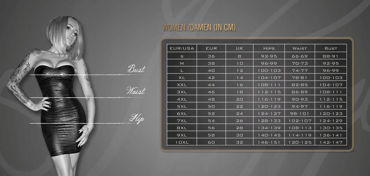 Унікальним, контрастним акцентом в костюмі є елемент з матеріалу wetlook з мокрим блиском, який виконує роль корсета. Це надає їй характерності, завдяки чому легше підкреслити достоїнства фігури, адже декоративна шнурівка на спині підкреслює талію і створює чуттєвий ефект. Це додає елегантності та загадковості всьому.