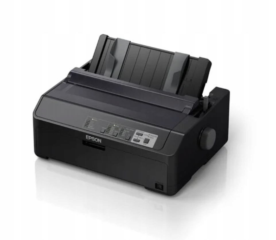 Epson FX-890II. Максимальна швидкість друку: 612 cps, Максимальна роздільна здатність: 240 x 144 DPI, Максимальна швидкість друку (пробна): 463 cps. Максимальна площа друку: A4 (210 x 297 мм), Типи пристроїв подачі паперу: Конверти, Діапазон довжини аркуша: 0,12 - 0,46 мм. Колір продукту: Чорний, Розмір буфера: 128 КБ, Рівень звукового тиску (друк): 55 дБ. Стандартні інтерфейси: Паралельний, USB 2.0. Друкувальні головки: 9-контактний, напрямок друку: двонаправлений, ресурс головки: 400 мільйонів символів