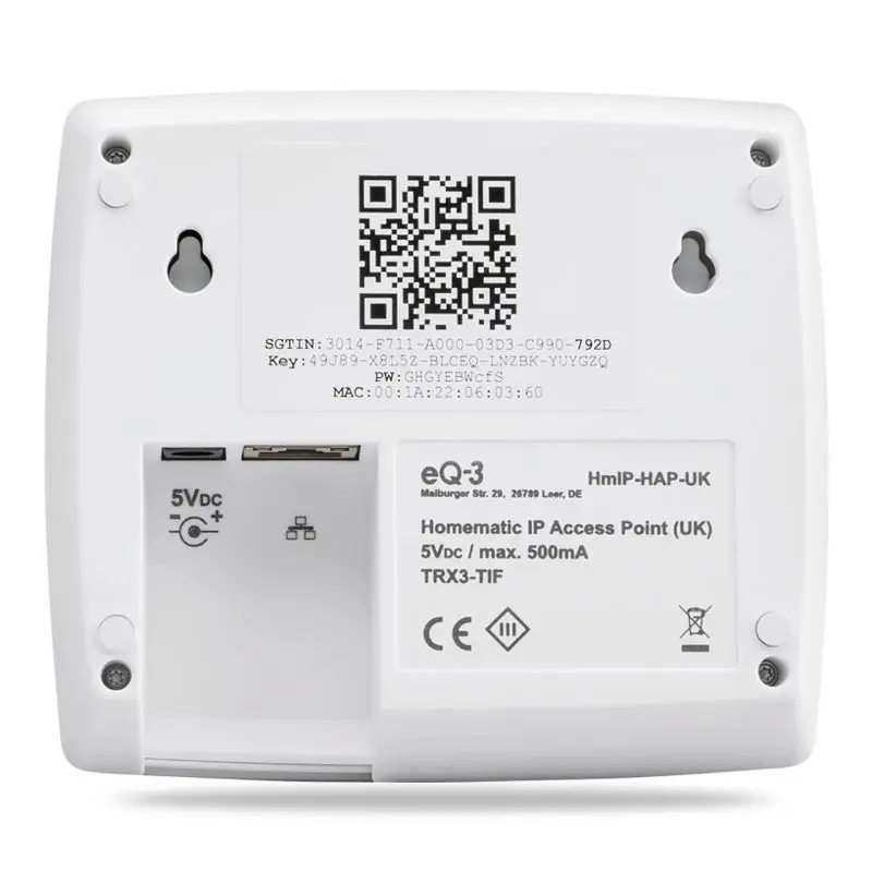 Встановлення центрального блоку (hmip-hap) дуже проста. Пристрій повинен бути підключений до мережі 230 В за допомогою поданого джерела живлення, а потім підключити їх за допомогою кабелю Ethernet (RJ -45 - у наборі) до стандартного маршрутизатора, підключеного до Інтернету, який підключатиметься до хмари. Ви встановлюєте Homematic IP (немає необхідності створювати обліковий запис) і просто випаровуєте центральний блок (HMIP-HAP) за допомогою QR-коду , розташованого на звороті пристрою. Аналогічним чином до системи можна додати нові пристрої за допомогою домашнього мобільного додатка - просто сканування QR -код в декількох простих кроках і готова. Матеріали встановлення постачаються з пристроєм.
