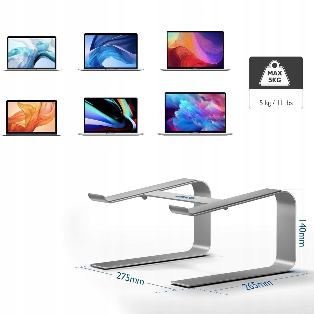 - Універсальна сумісність: Стенд забезпечує сумісність з пристроями з діагональною від 10 "до 17,3" , включаючи MacBook, Dell XPS, HP, ASUS, Lenovo та інші. Максимальна здатність навантаження - 5 кг (11 фунтів).
