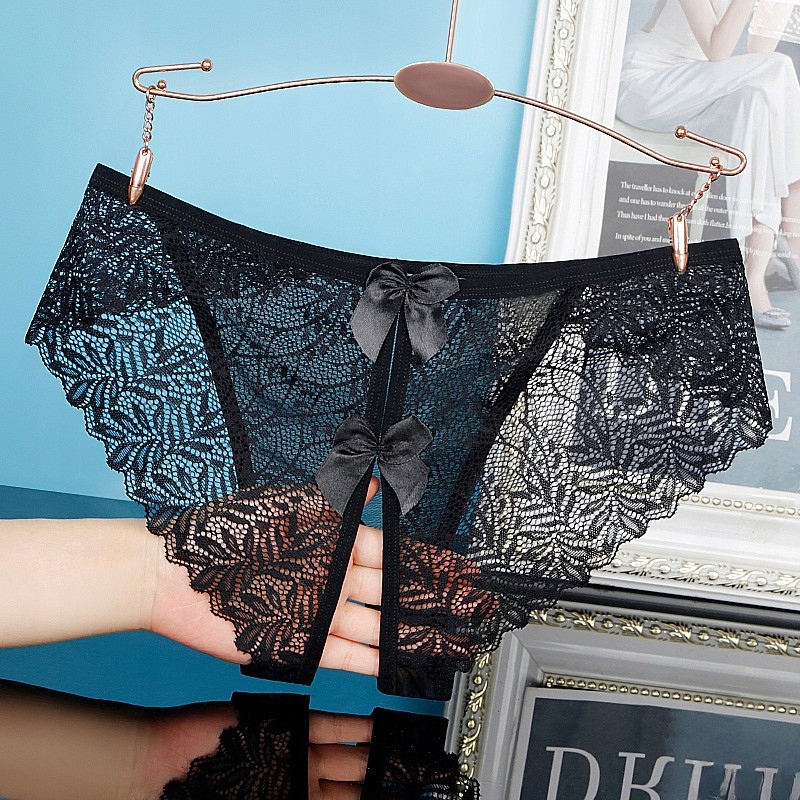 Сексуальні мереживні трусики з відкритою спиною і бантиками - прозорі трусики з ніжної сітки