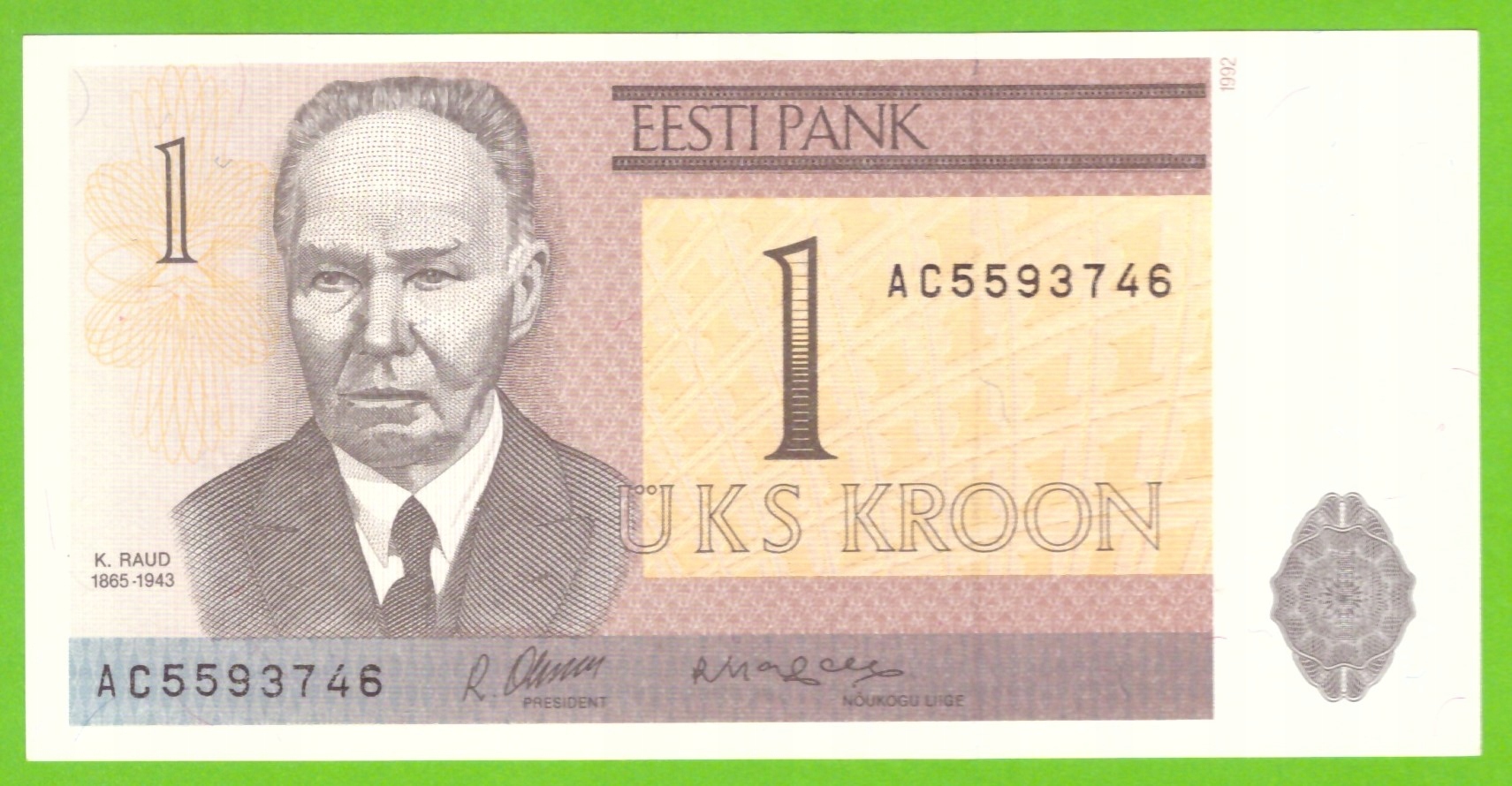 ЕСТОНІЯ 1 КРОНА 1992 P-69 UNC