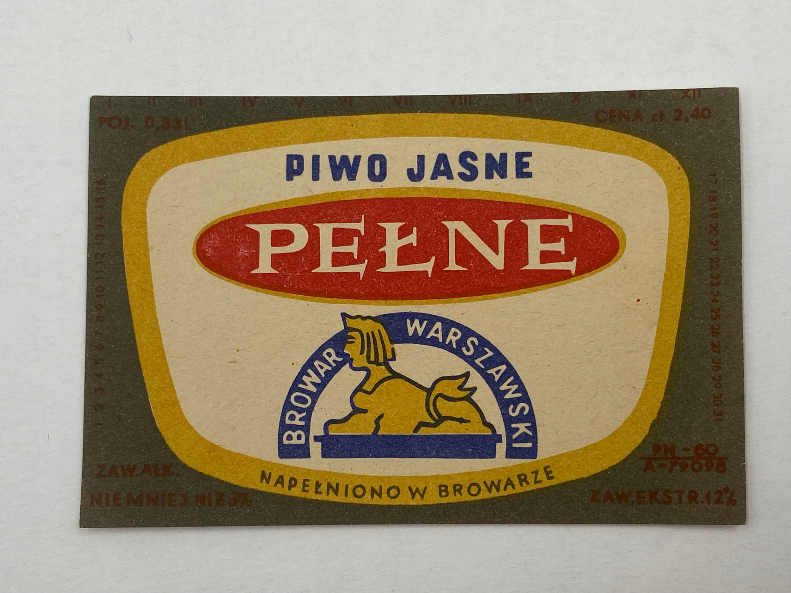 Етикетка пива: повне світле пиво, Browar Warszawski