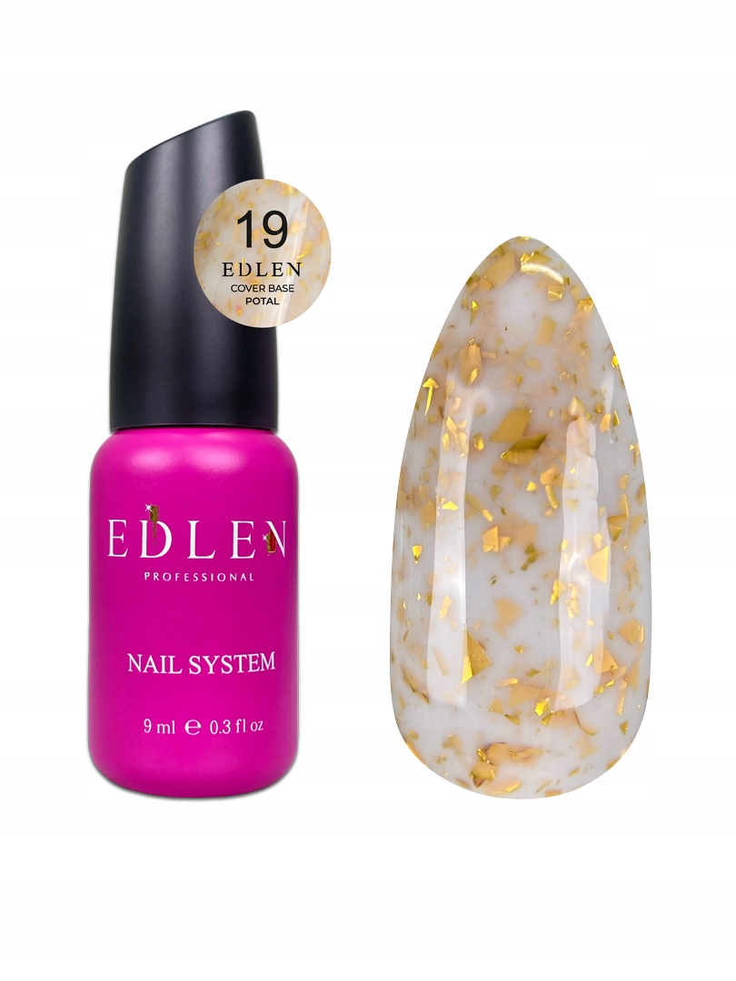 Основна обкладинка Potal edlen №19 - молочний відтінок із шматочками золотих Поталі. 4 Тепер основи можна використовувати не лише для вирівнювання, але й для виготовлення інструментів - просто застосовуйте вирівнюючу функцію базової основи, щоб швидко та легко отримати готовий інструмент, призначений для дизайну. Завдяки спеціальній формулі та ідеальній портативній Поталії в підставах вони легко самостійно -рівень і зручніше на роботі, а частинки горщиків розбиваються на пластинці для нігтів.