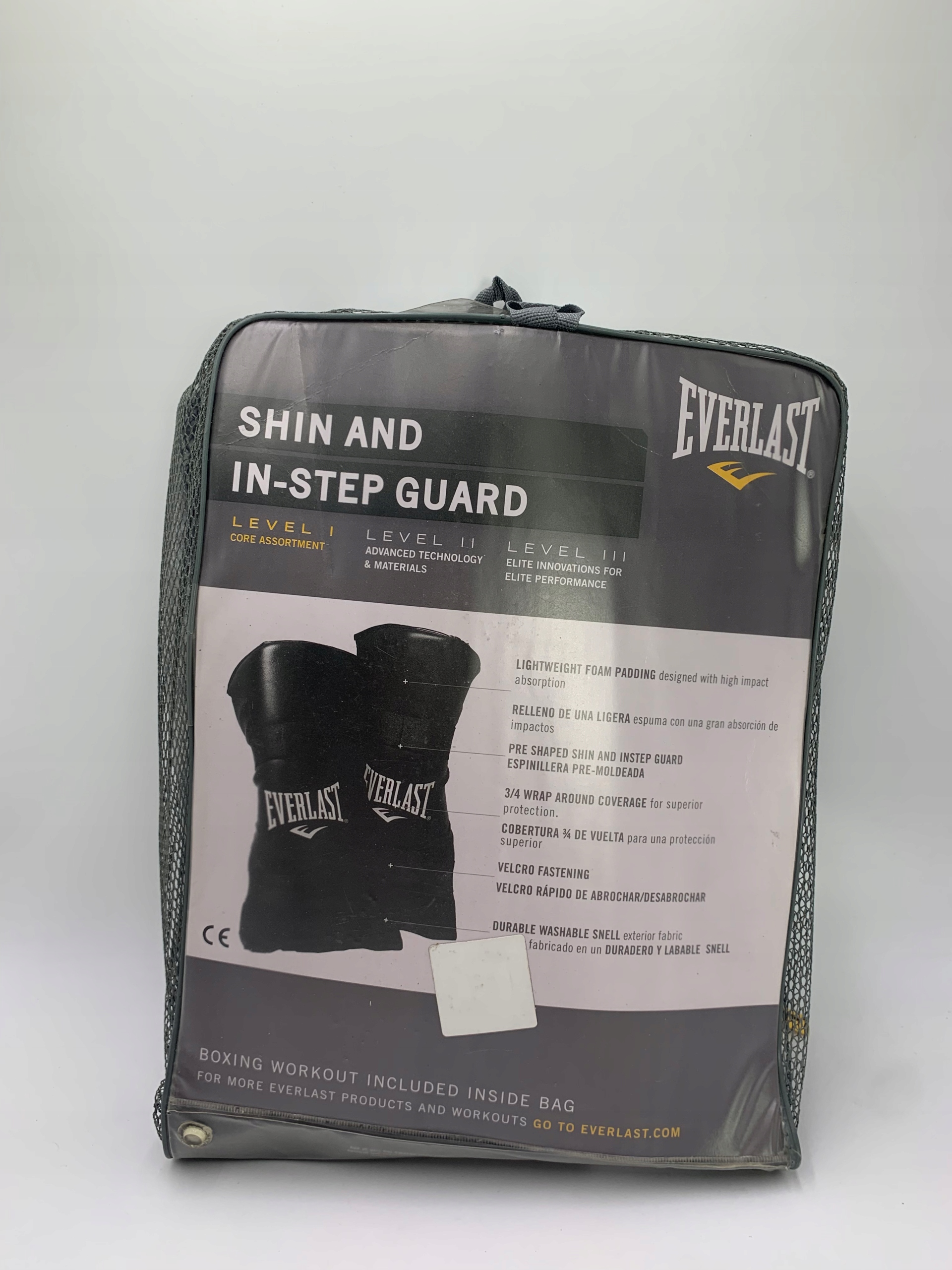Пінопластові протектори Everlast — це легкі протектори для гомілок із амортизаційної піни з двома твердими липучками та еластичними стрічками, одна з яких кріпиться до підйому.