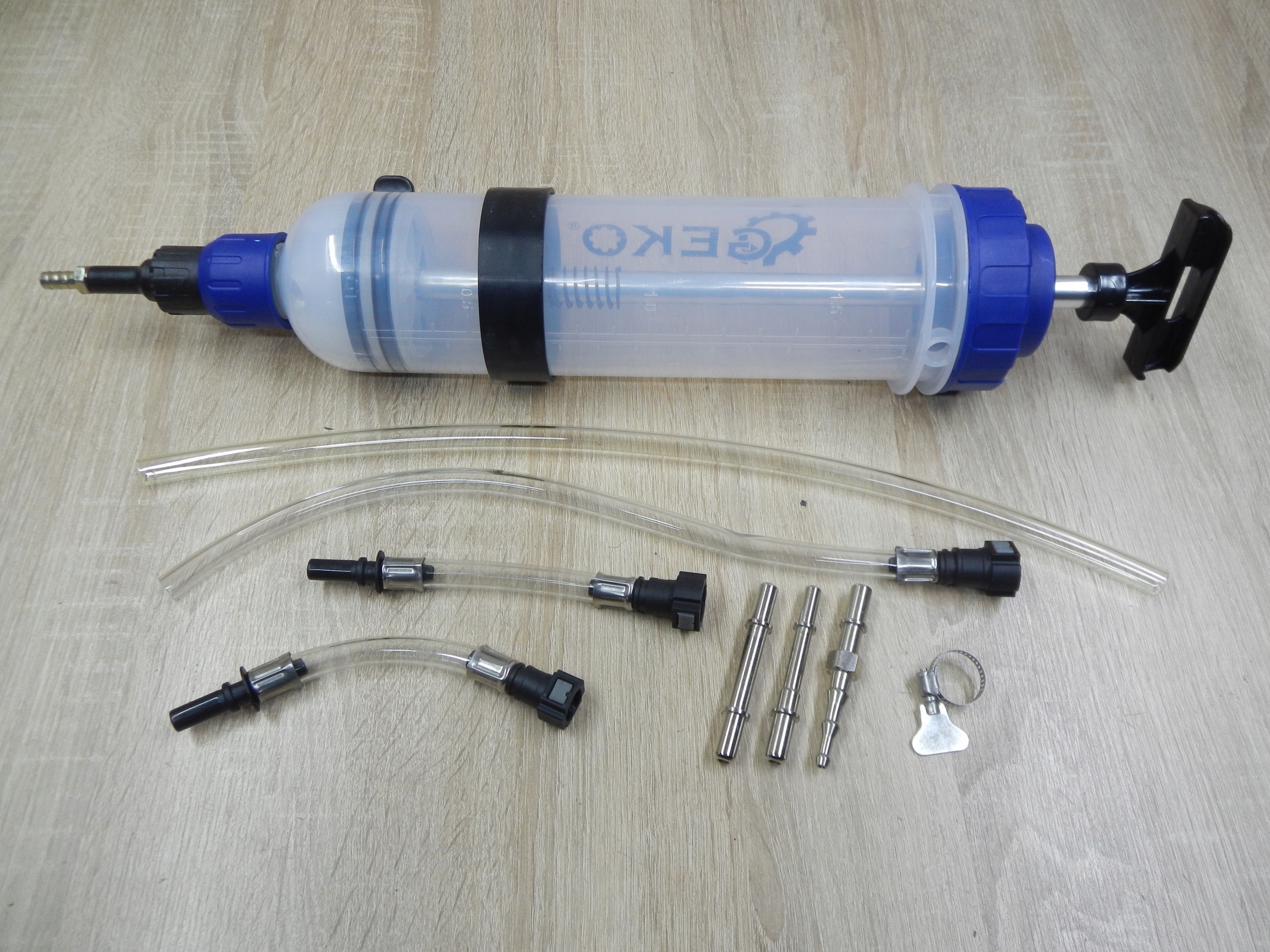 Ручний пилосос від відомого інструментального бренду GEKO об'ємом 1,5 л. Пристрій, призначений для відсмоктування та впорскування масла та інших робочих рідин у важкодоступні місця.