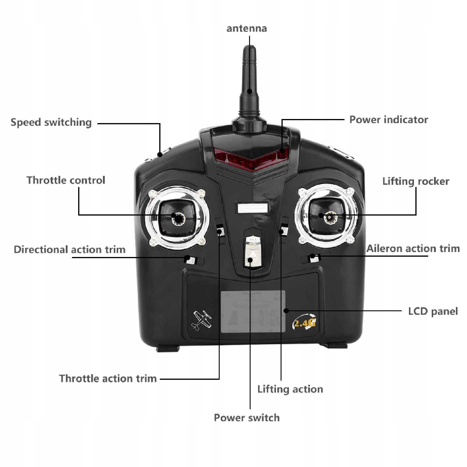 Час польоту: приблизно 25 хвилин частота керування: 2,4 ГГц. >Функція: обертання вперед, назад, ліворуч і праворуч, точне регулювання, обертання на 360 градусів, гвинтова фіксація, циркуляція тощо.