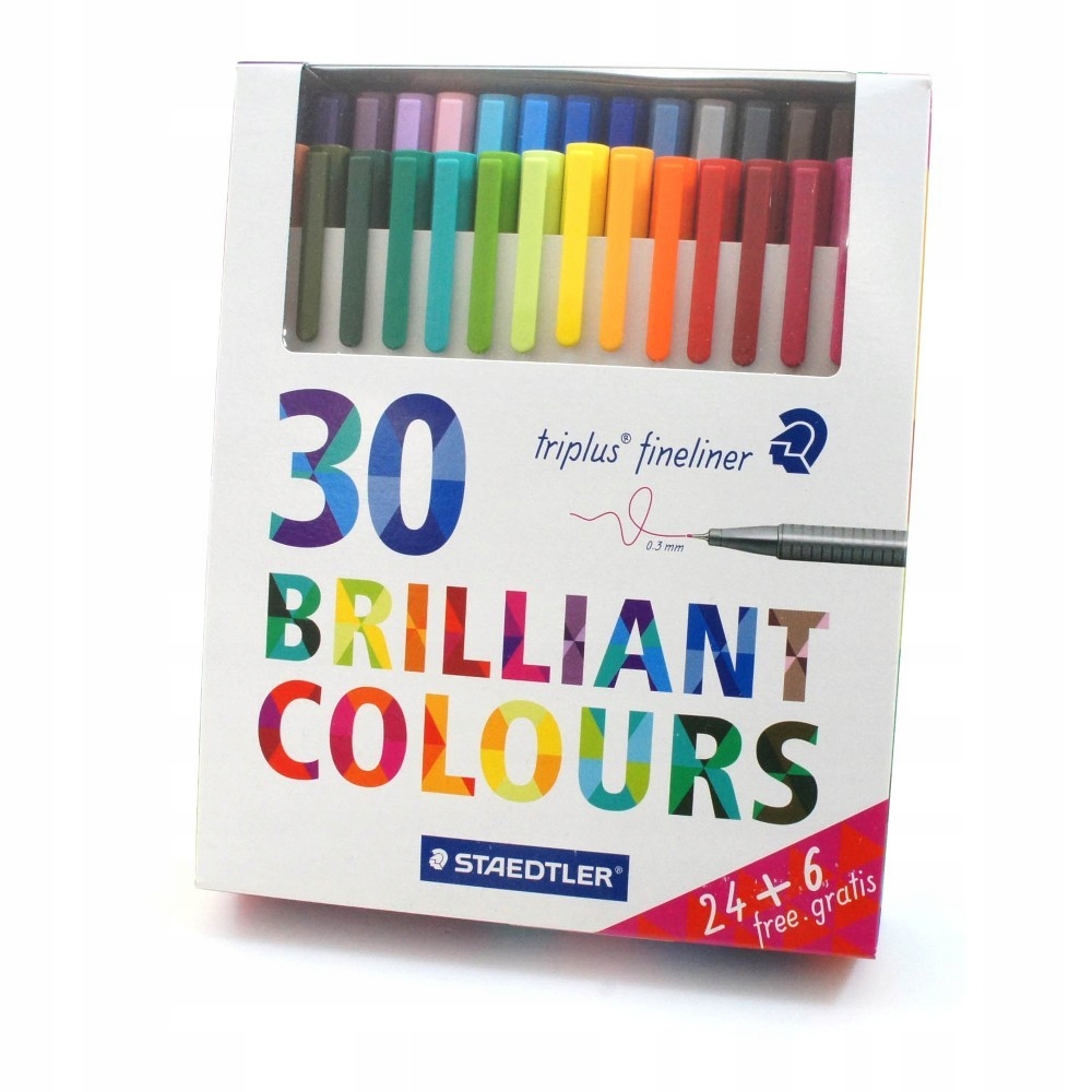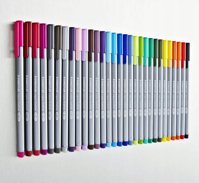 Stedtler Triplus Fineliner 30 - тридцять інтенсивних кольорів. Чорнило на водній основі характеризується неймовірною стійкістю, високою інтенсивністю та коротким часом висихання. Не розмазується, кінчик не дряпає папір, ним можна плавно провести по паперу, проводячи лінію шириною 0,3 мм. Правильно сконструйований ковпачок захищає лайнер від висихання. Ергономічний трикутний корпус забезпечує винятковий комфорт при письмі. Ручки Triplus Fineliner підходять для письма, малювання та дизайну.