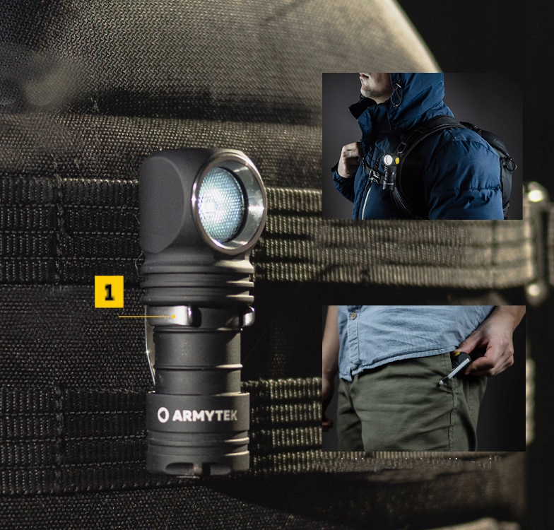✅ Стійка глибока кліпса дозволяє прикріпити ліхтарик до кишені або на поясі.