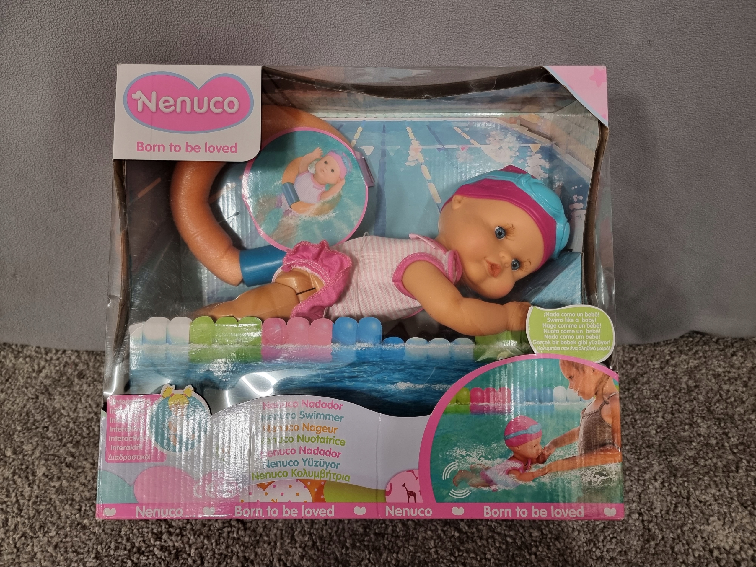 Навчіться плавати Ненуко! Ненуко готова у своєму купальнику та шапочці для плавання навчитися плавати з вами. Лялька з шарнірними ніжками, які рухаються у воді, щоб плавати, як справжня дитина. Працює від батарейок (3 х ААА). Nenuco може плавати на спині або пересуватися за допомогою плаваючого колеса! Включає: шарнірну ляльку, купальник, шапку та окуляри, плаваюче колесо. Рекомендовано для віком від 3 років.