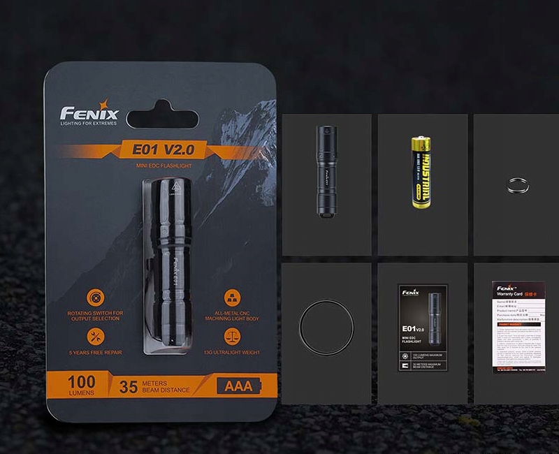 fenix e01 v2.0 - це легкий і зручний ліхтарик з ефективним потоком світла, який чудово підходить у щоденних додатках, як елемент обладнання EDC або запасного ліхтарика.