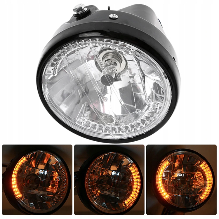 Сучасний дизайн лампи надасть кожному мотоциклу свіжий і привабливий вигляд. Цей продукт призначений для людей, які хочуть досягти унікального вигляду своїх мотоциклів. Лампа містить лампу H4 потужністю 35 Вт з коротким і дальнім світлом, а також світлодіодними покажчиками повороту.
