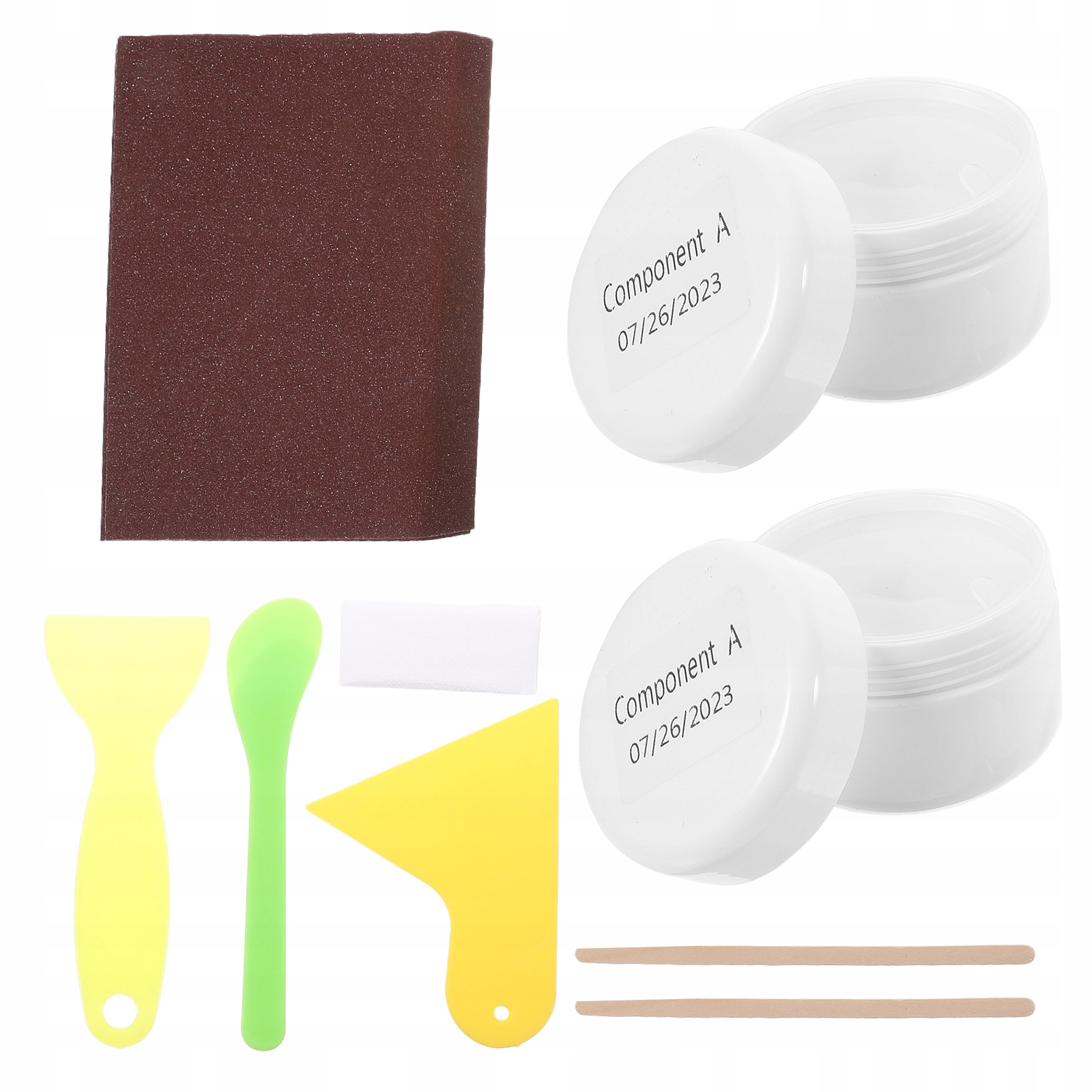 ✅ 1 x Ремонтна паста A 1 x Ремонтна паста B 2 x Дерев’яні міксери 3 x Скребки 1 x Наждачний папір 1 Пара x Рукавиці