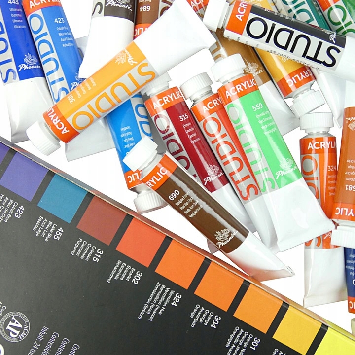 ✔️Акрилові фарби Phoenix - це непрозорі фарби з 24 інтенсивними кольорами. Густа консистенція та висока якість барвників гарантують дуже гарне покриття пофарбованих поверхонь - Зазвичай це папір або картон, але акрилові фарби також можна використовувати для фарбування дерева, скла або глини. Роботи, створені акриловими фарбами, мають живі та стійкі кольори.
