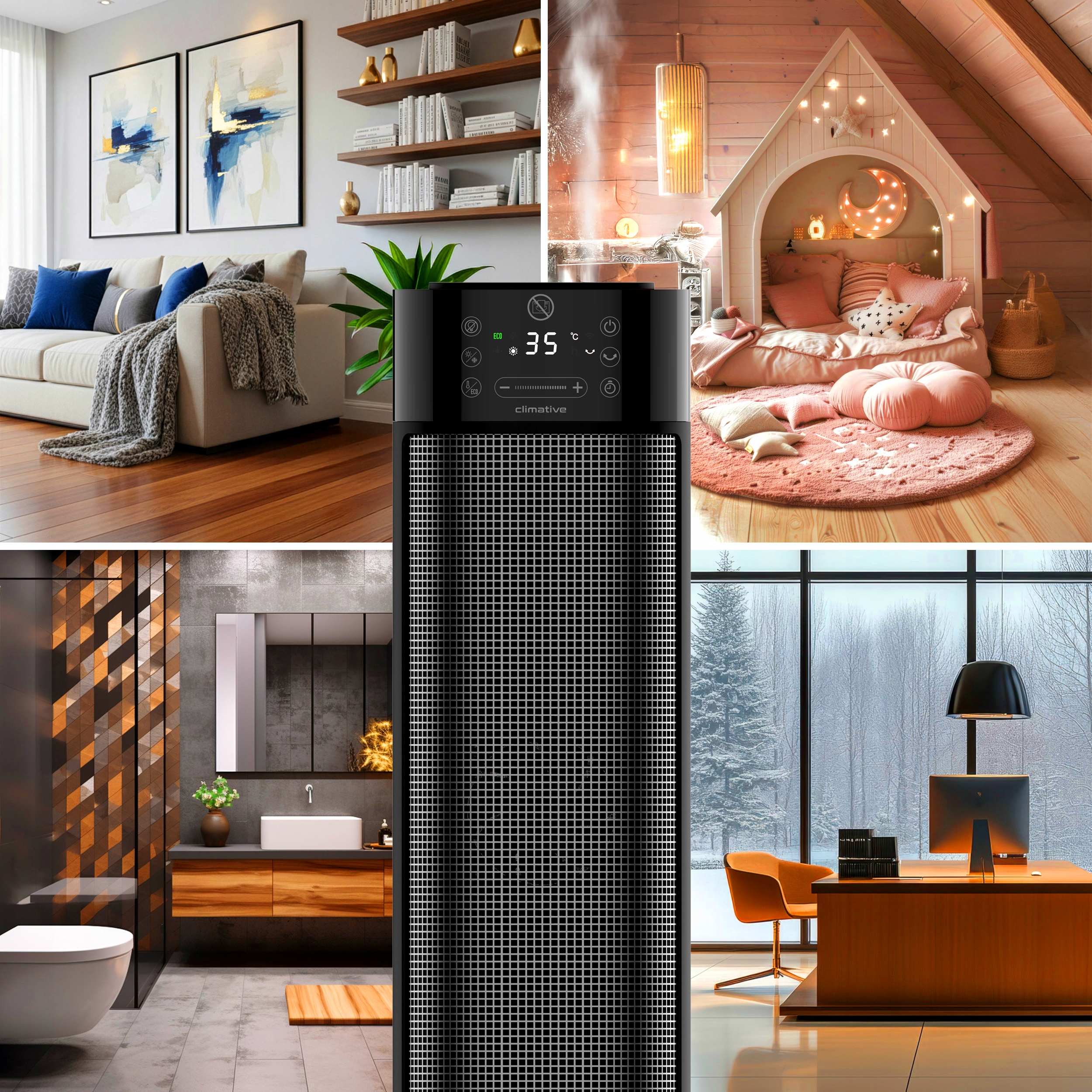 Універсальний і стильний колонний радіатор MISTIQ WiFi підходить скрізь, де важливі тепло, свіже повітря та елегантний зовнішній вигляд. Завдяки компактній формі та безшумній роботі він добре працюватиме як вдома, так і на роботі.