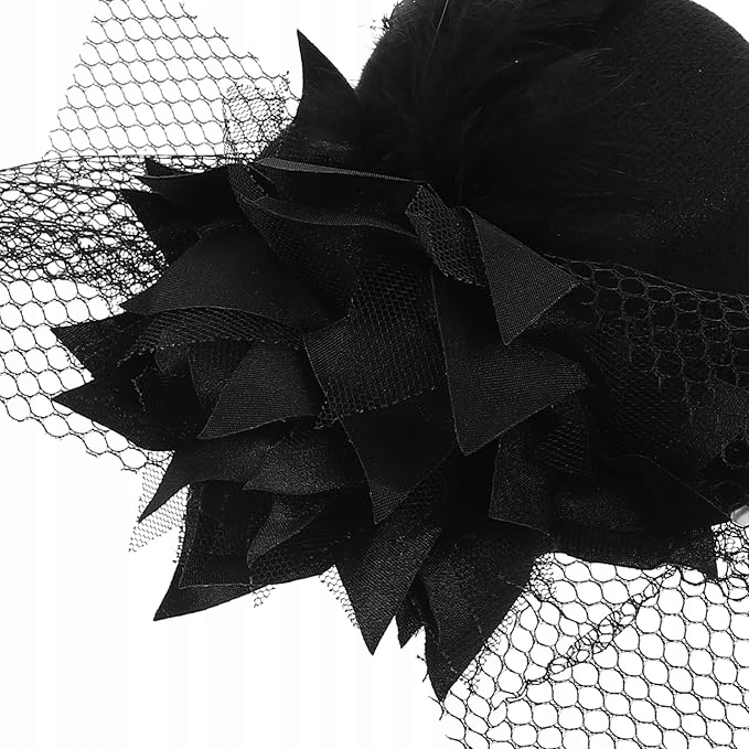 - Заколка для волосся Fascinator для жінок: Колір: переважно чорний. Матеріал: міцна фланель, атлас і сітка.