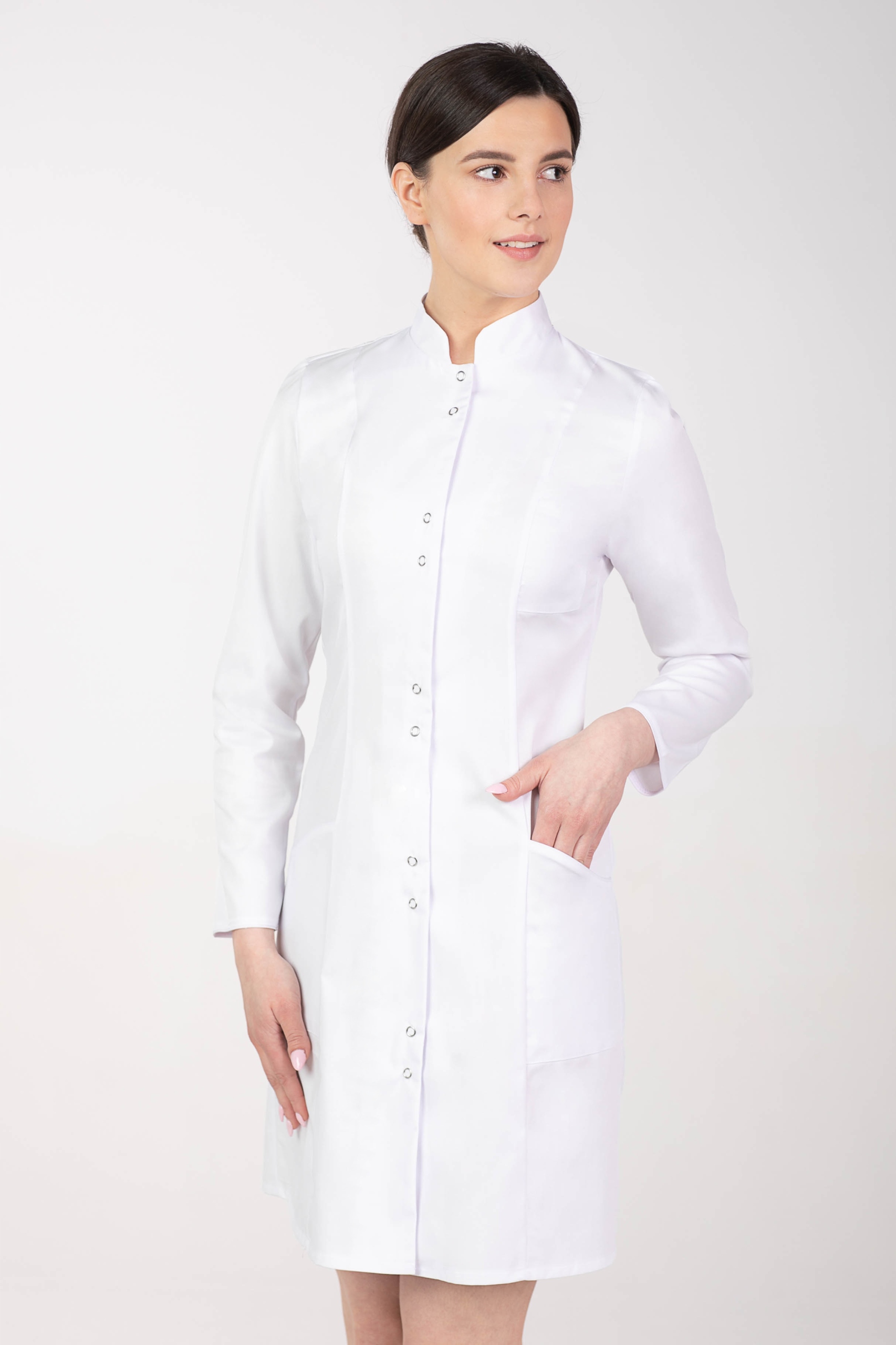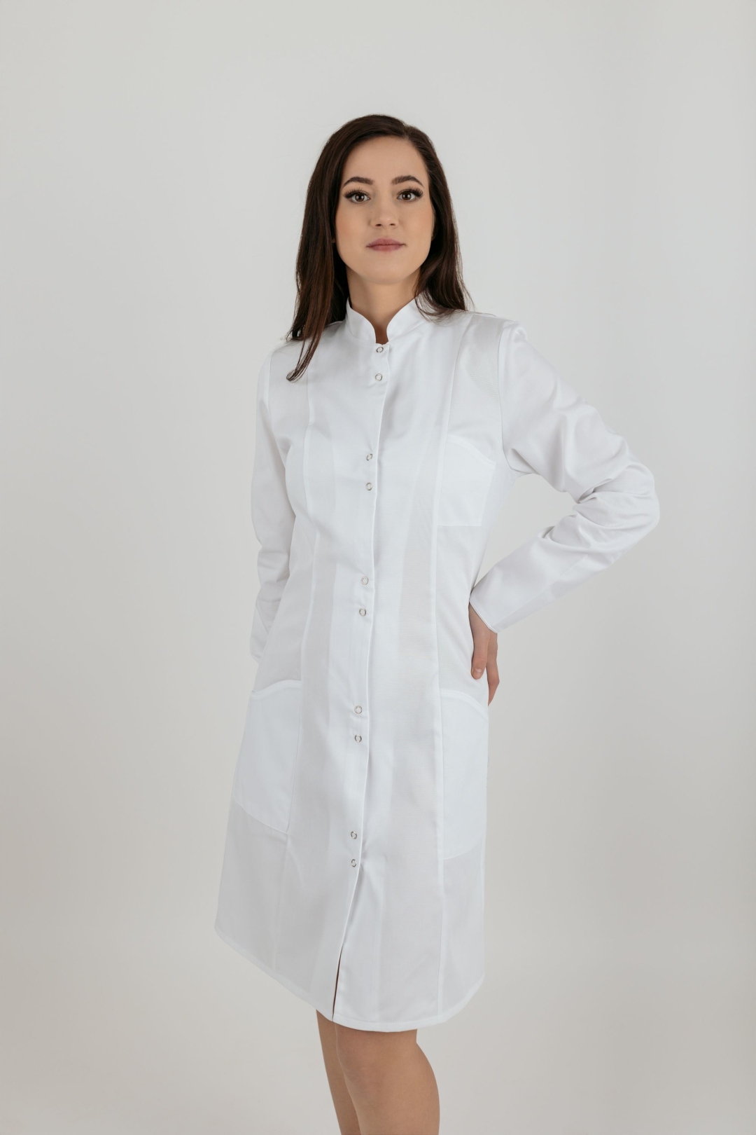 Жіноча медична лабораторія з медичного фартуха Класична біла, застелена пресою 48