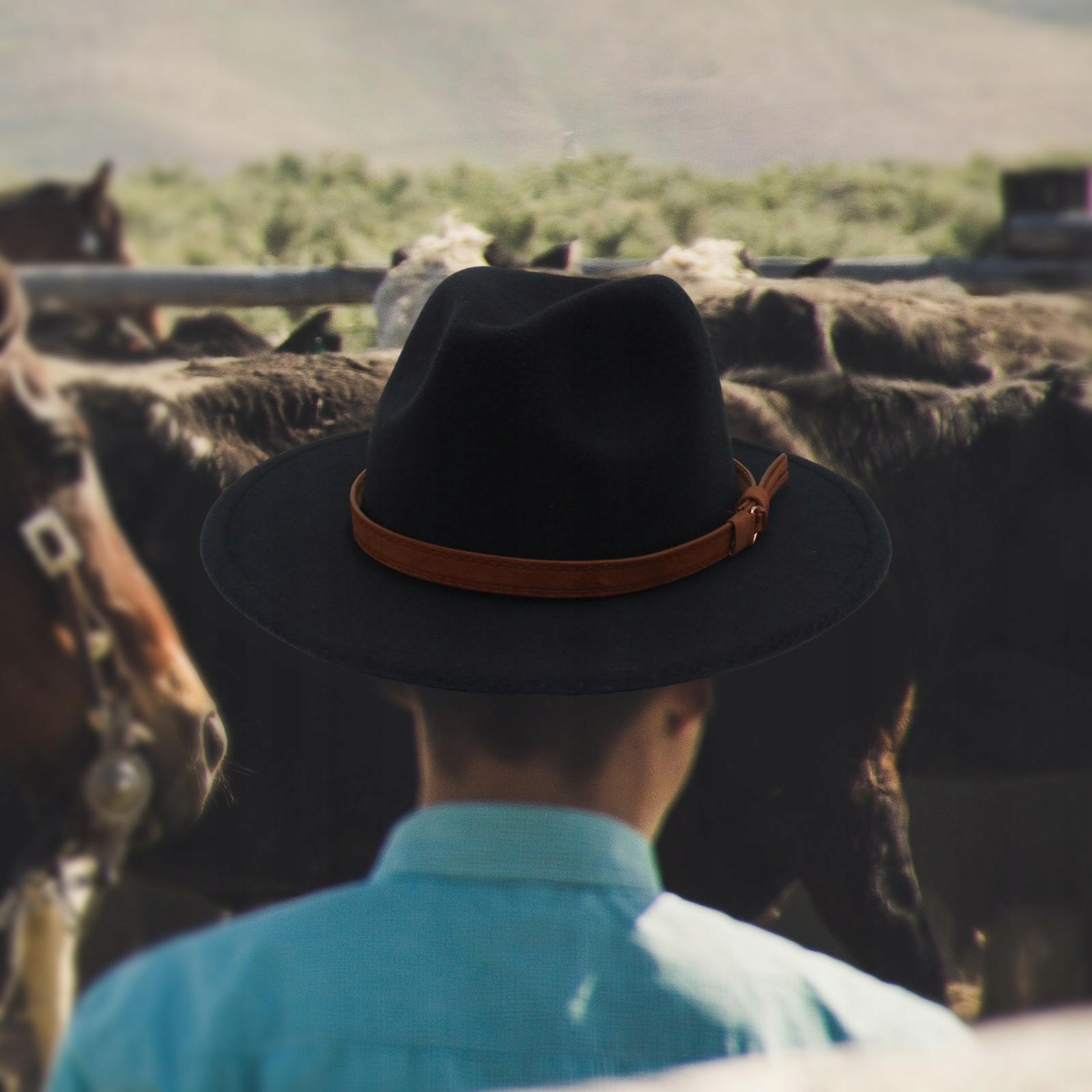 Федор капелюх з широким круговим капелюхом для чоловіків, жінок чорного кольору