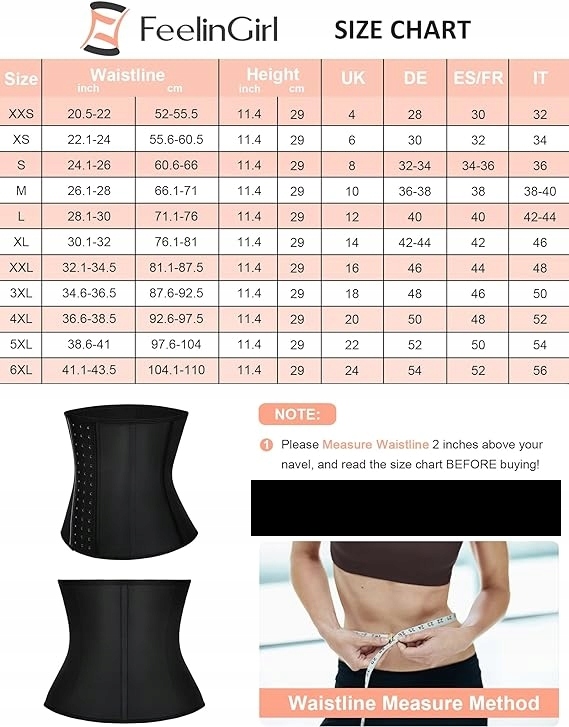 FeelinGirl Gorset Modelujący Wyszczuplający talię Lateksowy XXL Bawełna