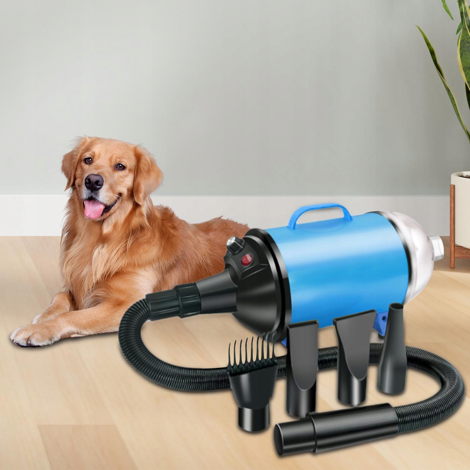 Фен для домашніх тварин переносний, безступінчатий, з 4 оновленими чорно-синіми