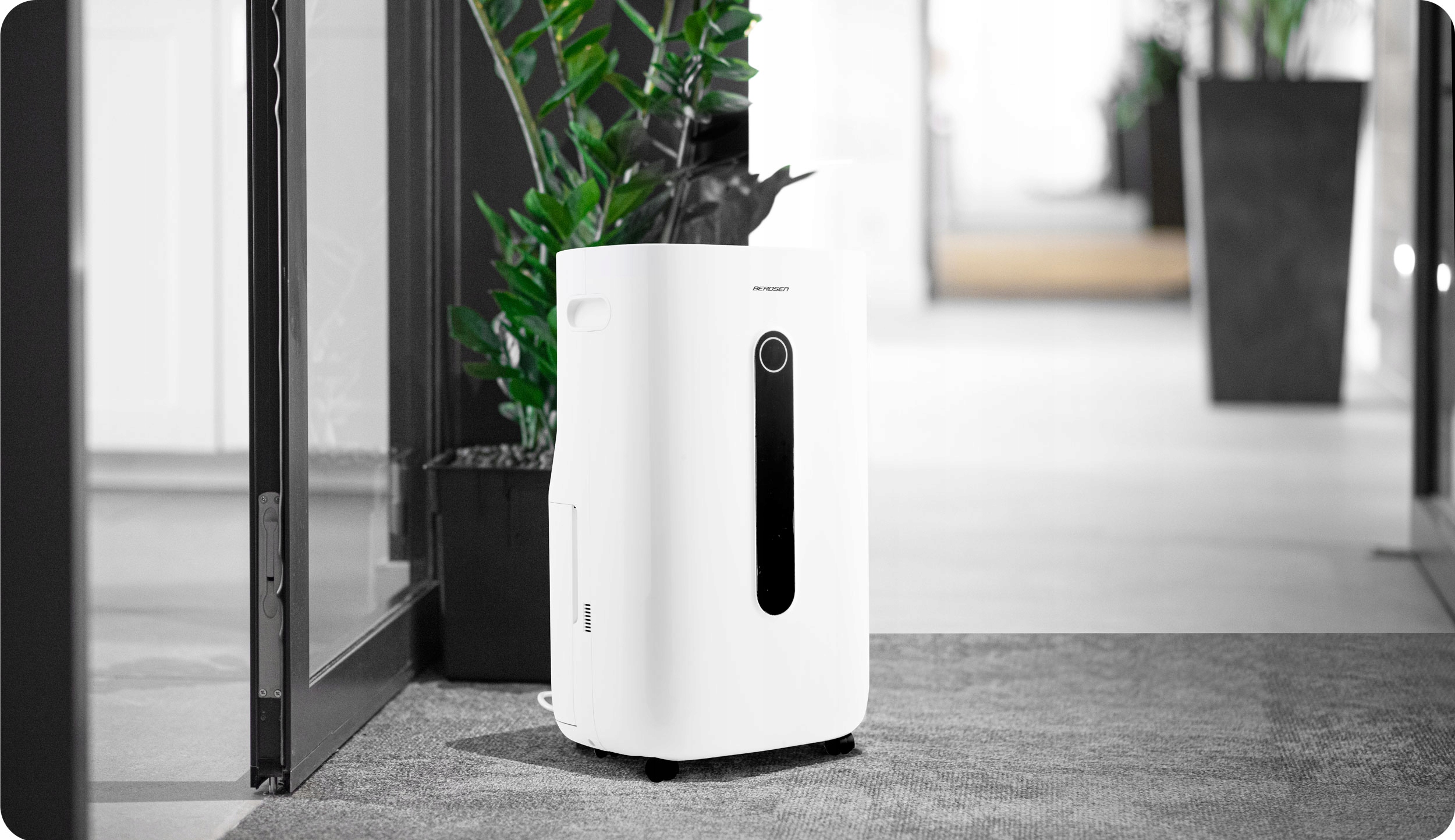 Сучасна сенсорна панель управління з системою soft touch, розташована у верхній частині осушувача, забезпечить найвищий комфорт використання. Завдяки йому можна регулювати всі робочі параметри. Дисплей відображає поточну вологість кімнати та вибрані функції. Ви також можете легко ввімкнути нічний режим, який вимкне панель, дозволяючи вам комфортно спати або просто економити енергію.
