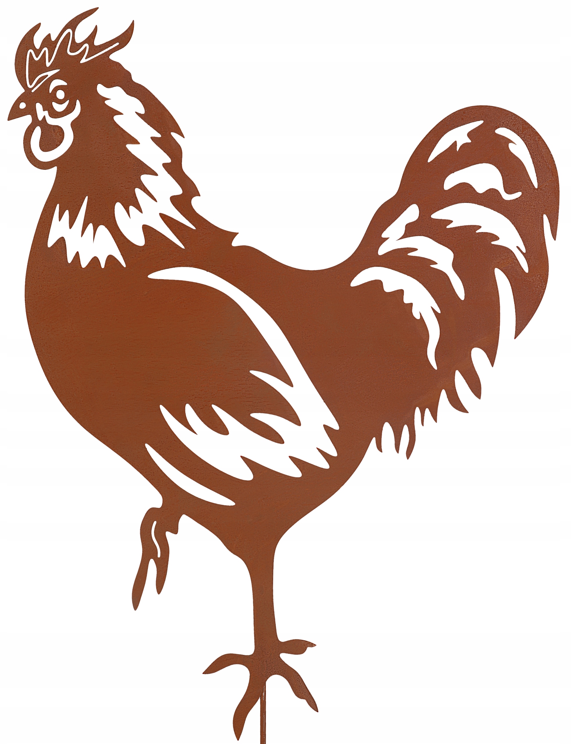 - Півень із листового металу оснащений одним стрижнем, завдяки якому ви можете міцно встромити прикрасу в землю, дерево чи інший матеріал.