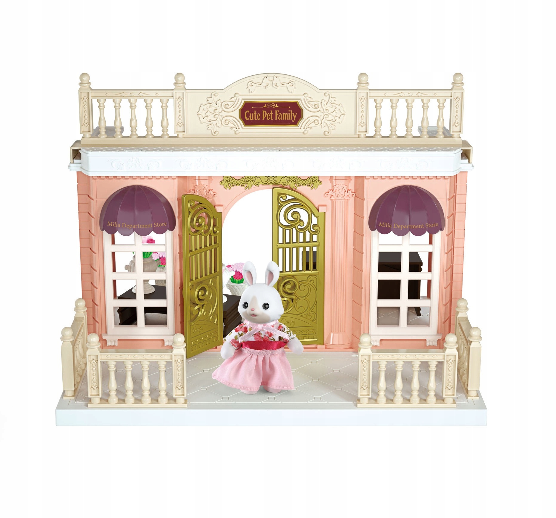 WOOPIE Rabbit Family Flower Shop Dollhouse + Figurine