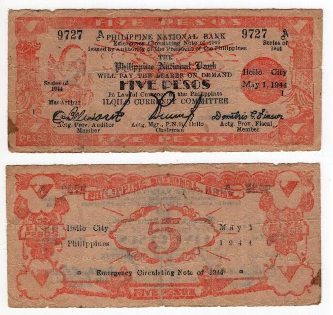 ФІЛІПІНИ ЯПОНСЬКА ОКУПАЦІЯ / ІЛОЙЛО 1944 5 ПЕСО