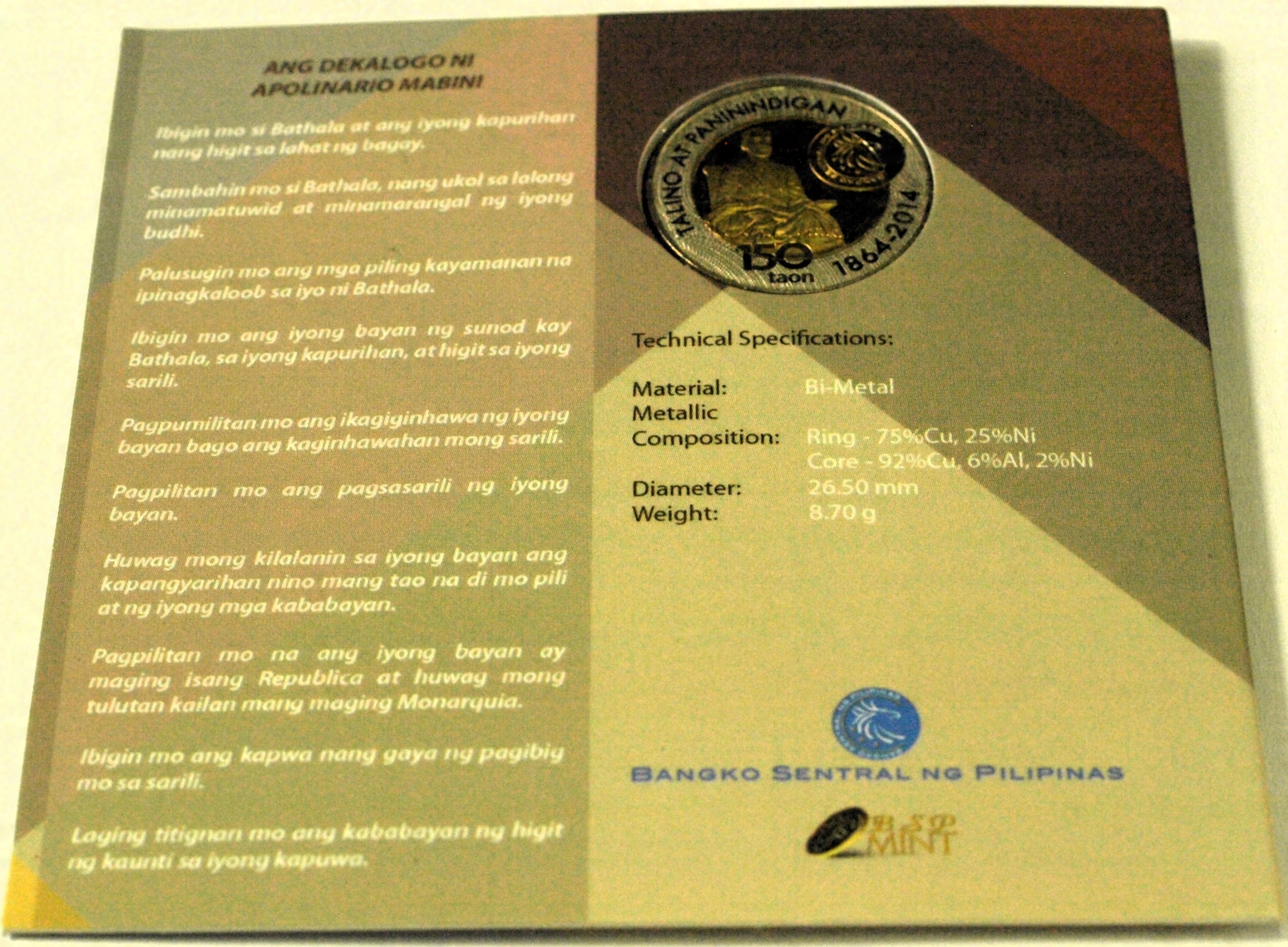 Блістер Аполінаріо Мабіні 10 песо песо 2014 Філіппіни. Оригінал. ПЕРЕВІРІТЬ ІНШІ АУКЦІОНИ - ЗБИРАЙТЕ РІДКІСНІ ЦІННОСТІ З НУМІЗМАТО!