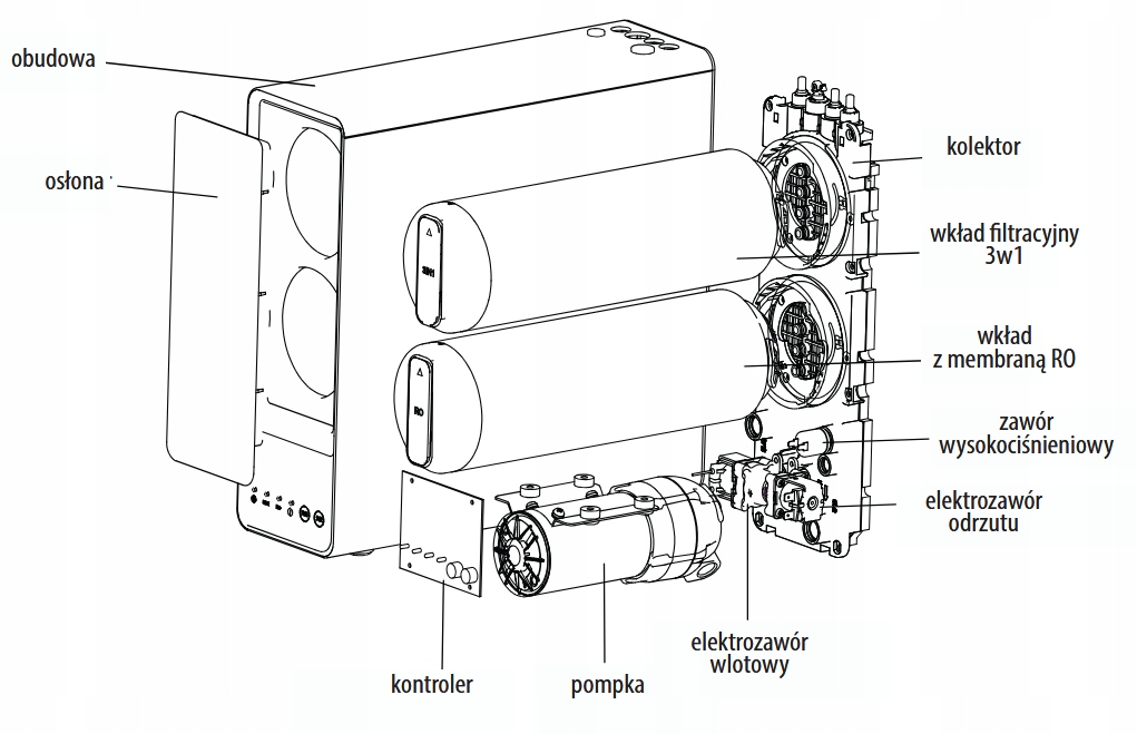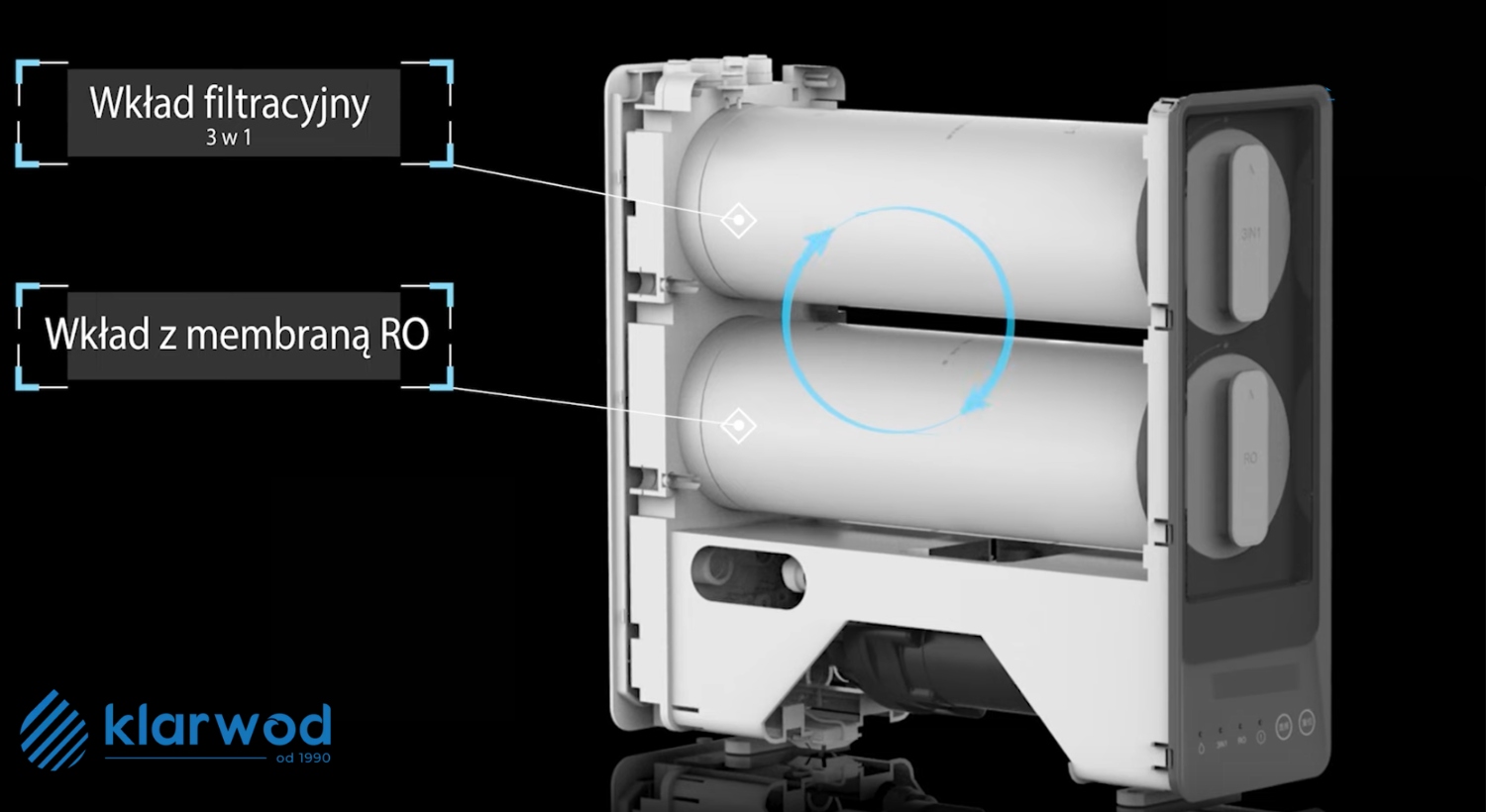 - Відсутність резервуару для зберігання означає високу витрату (до 90 л/год) і свіжість кожної краплі осмотичної води.