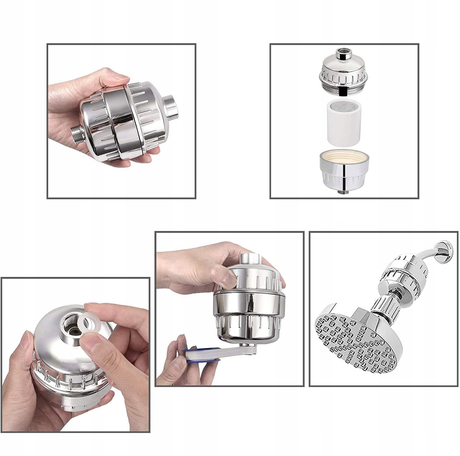 18-ступінчаста душова фільтр: Фільтр душової головки може видалити хлор, водорості, хлораміну, бактерії, важкі метали тощо. Забезпечити здорове життя для себе та своєї родини. Кільце і тефлонова стрічка. Повні аксесуари, інструменти не потрібні. Простий у використанні та економить час.