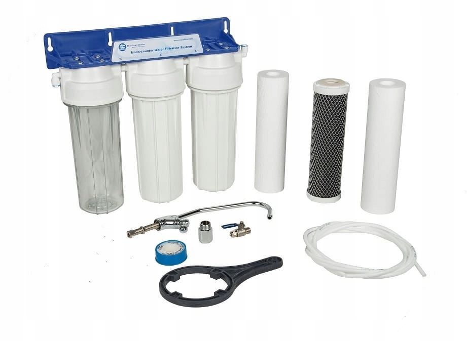 Цей фільтр має повний набір для кріплення під раковиною, це: носик з клапаном для малювання чистої води, шланга та клапана з з'єднанням (адаптером), який повинен бути побудований на холодній воді перед клапаном для акумулятора раковини. Залежно від якості води, цей фільтр може бути вільно налаштований за допомогою механічних, спеціалізованих та вуглецевих вставок. Картриджі, доступні на інших наших аукціонах.