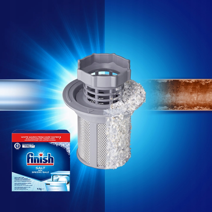 Багатофункціональні таблетки, такі як Finish Quantum і Finish All in One, мають функцію ополіскувача та солі. Однак у регіонах з дуже жорсткою водою ми рекомендуємо використовувати сіль і ополіскувач окремо, щоб захистити пристрій і отримати найкращі результати прання.