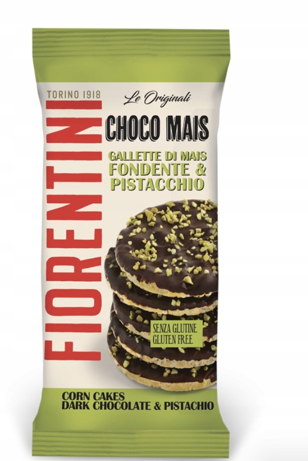 Унікальний делікатес від Fiorentini, ідеальний для любителів шоколаду та фісташок. Ці ніжні кукурудзяні вафлі вкриті оксамитовим шаром чорного шоколаду та посипані хрусткими фісташками, створюючи унікальне поєднання смаків і текстур. Не містять глютену та насиченого смаку, вони ідеально підходять як здорова закуска в будь-який час дня.